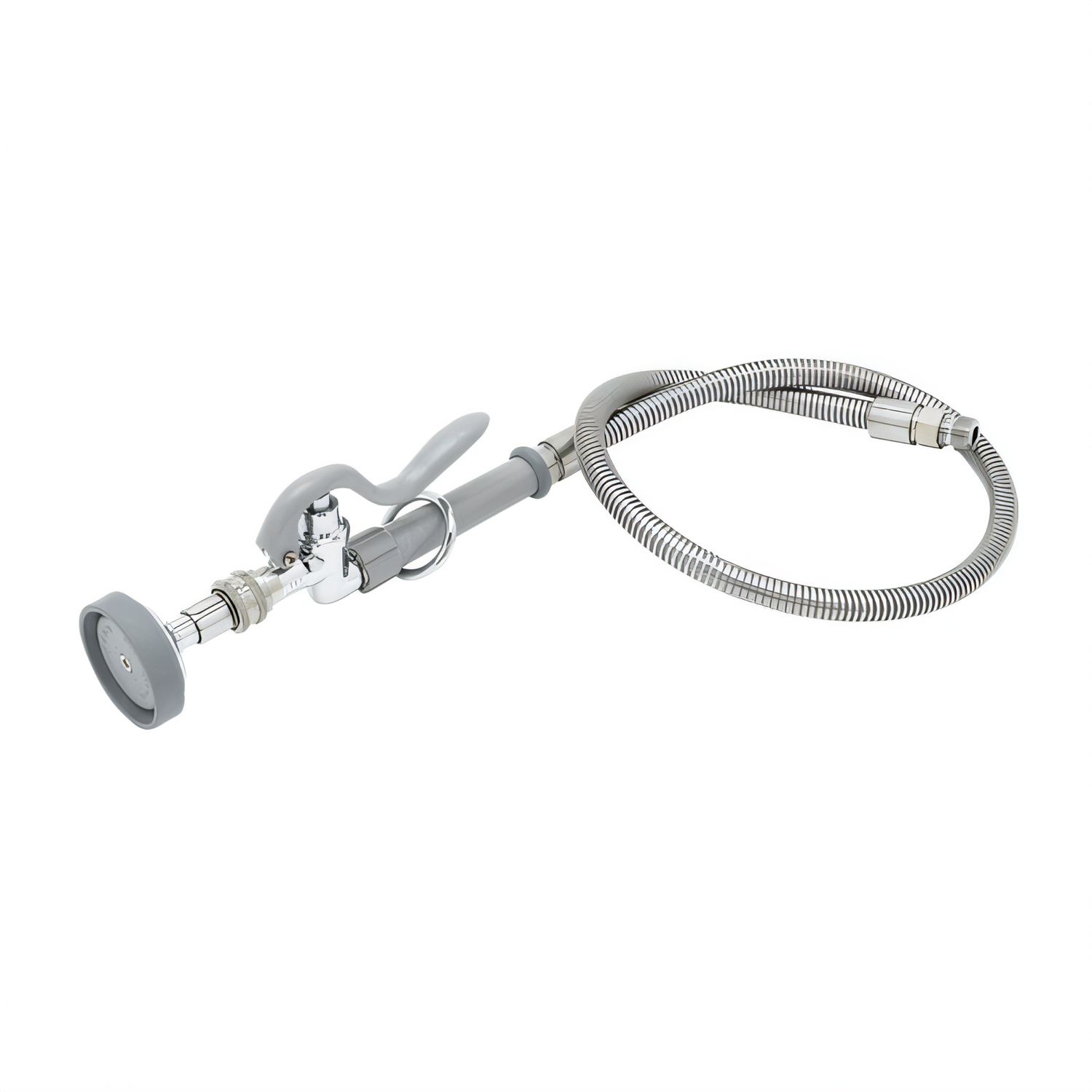 Pre-Rinse Spray Assembly, quick connect spray head, 3" spray pattern at 30" from spray head, 3 ft. flexible stainless steel hose (B-0044-H), 1/2" IPS male inlet, 48" overall length of unit, squeeze valve with quick-connect socket auto shut off valve