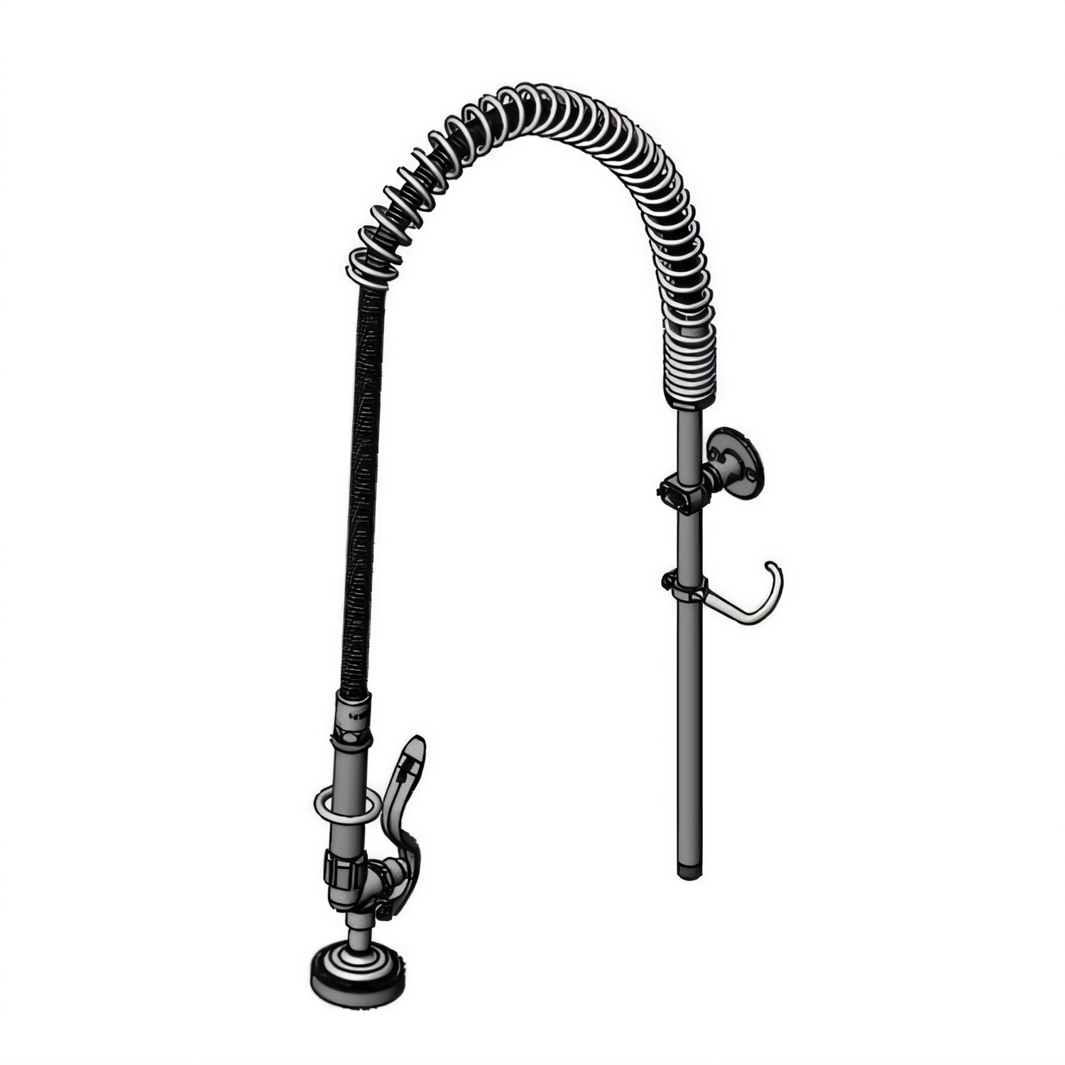 Pre-Rinse Unit, spring action gooseneck, without base faucet, 32-1/2"H, 1.15 GPM spray valve (B-0107), 44" flexible stainless steel hose, 18" riser, 2-3/8" wall bracket, finger hook, 3/8"NPT male inlet, low lead, cCSAus