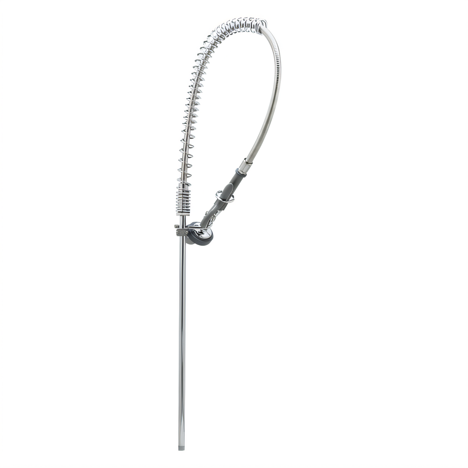 Pre-Rinse Unit, spring action gooseneck, without base faucet, 38-11/16"H, 9-1/8" clearance, 1.15 GPM spray valve (B-0107), 44" flexible stainless steel hose, 24" riser, 6" wall bracket, finger hook, under sink 1/4" IPS tailpieces, low lead, 2019 DOE PRSV - Class II