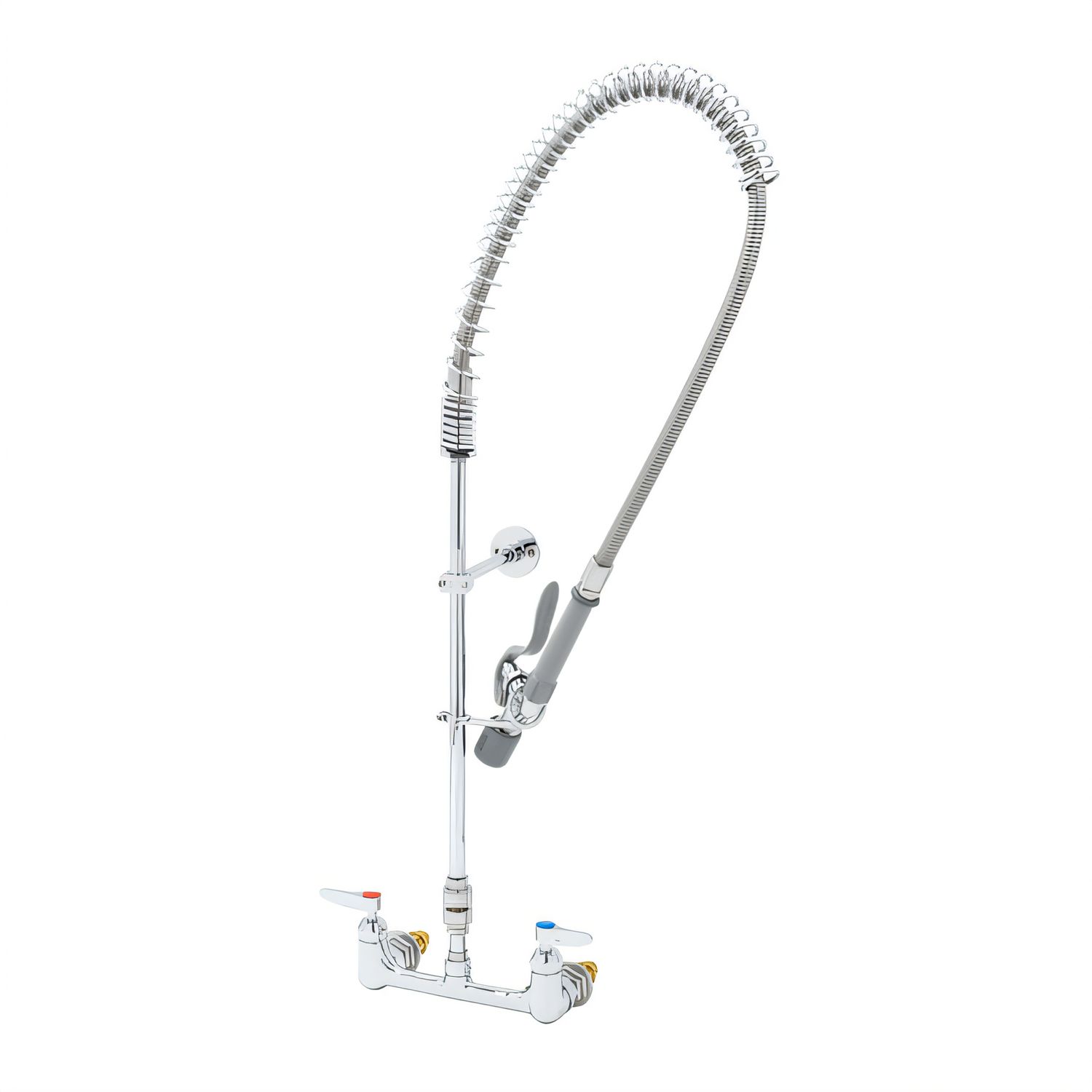 EasyInstall Pre-Rinse Unit, wall mount, 8" center, 12" swing spout add-on faucet, spring action gooseneck, 1.15 GPM spray valve (B-0107), 18" riser, 44" flexible stainless steel hose, vacuum breaker, 6" wall bracket, lever handles, quarter-turn Cerama cartridges, includes supply nipple kit (B-0425-M), low lead, 2019 DOE PRSV - Class II