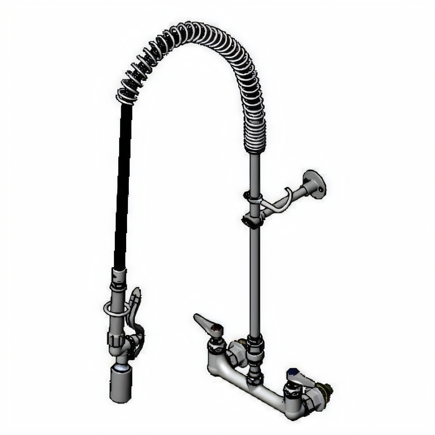 EasyInstall Pre-Rinse Unit, wall mount, 8" center, 12" swing spout add-on faucet, spring action gooseneck, low flow 0.65 GPM spray valve (B-0107-C), 18" riser, 44" flexible stainless steel hose, vacuum breaker, 6" wall bracket, lever handles, quarter-turn Eterna cartridges, includes supply nipple kit (B-0425-M), low lead, 2019 DOE PRSV - Class II