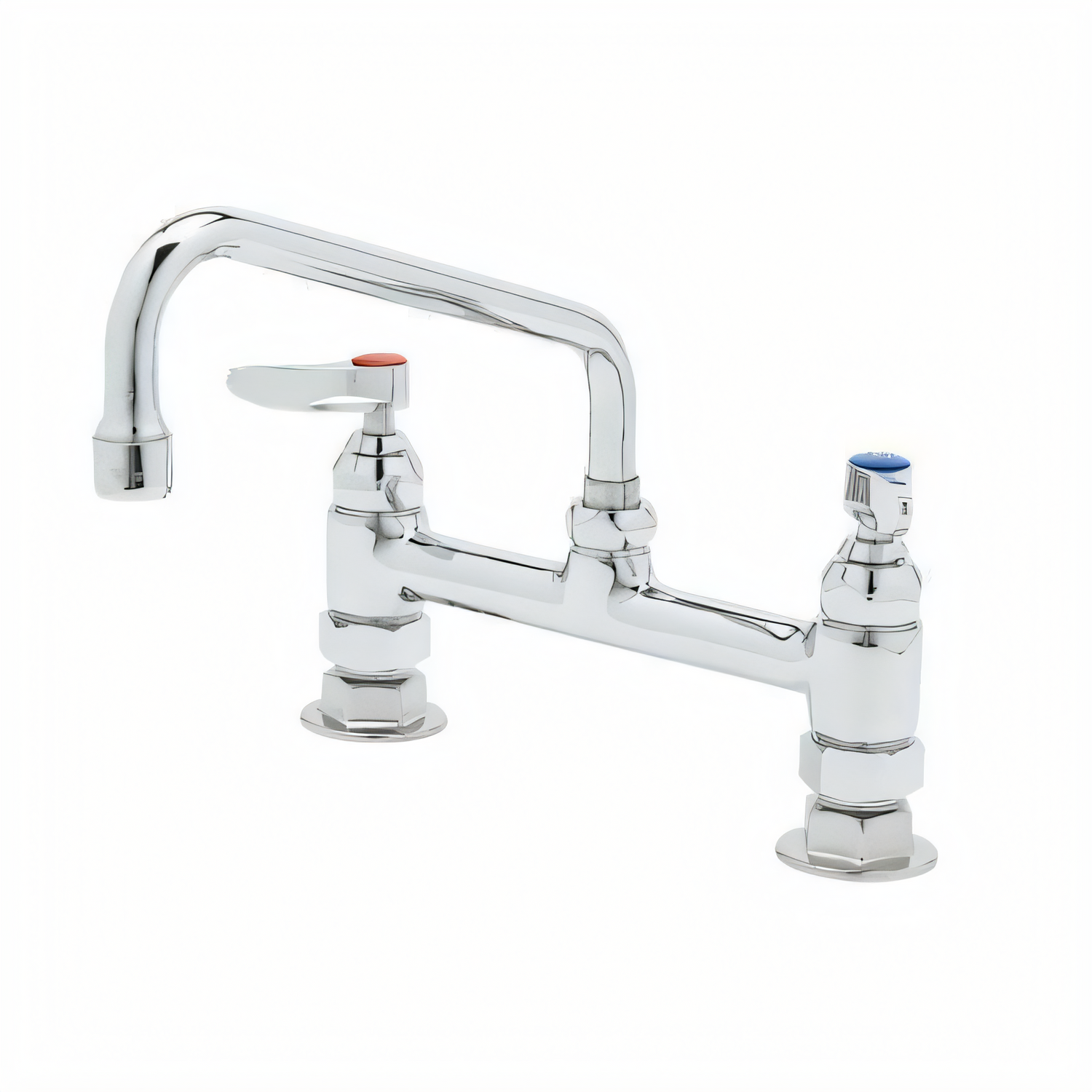 Double Pantry Faucet, deck mount, 8" centers, 8" swing nozzle with stream regulator, lever handles with color coded indexes, quarter-turn Eterna cartridges with spring checks, 1/2" NPT female inlets, low lead, cCSAus, ADA Compliant