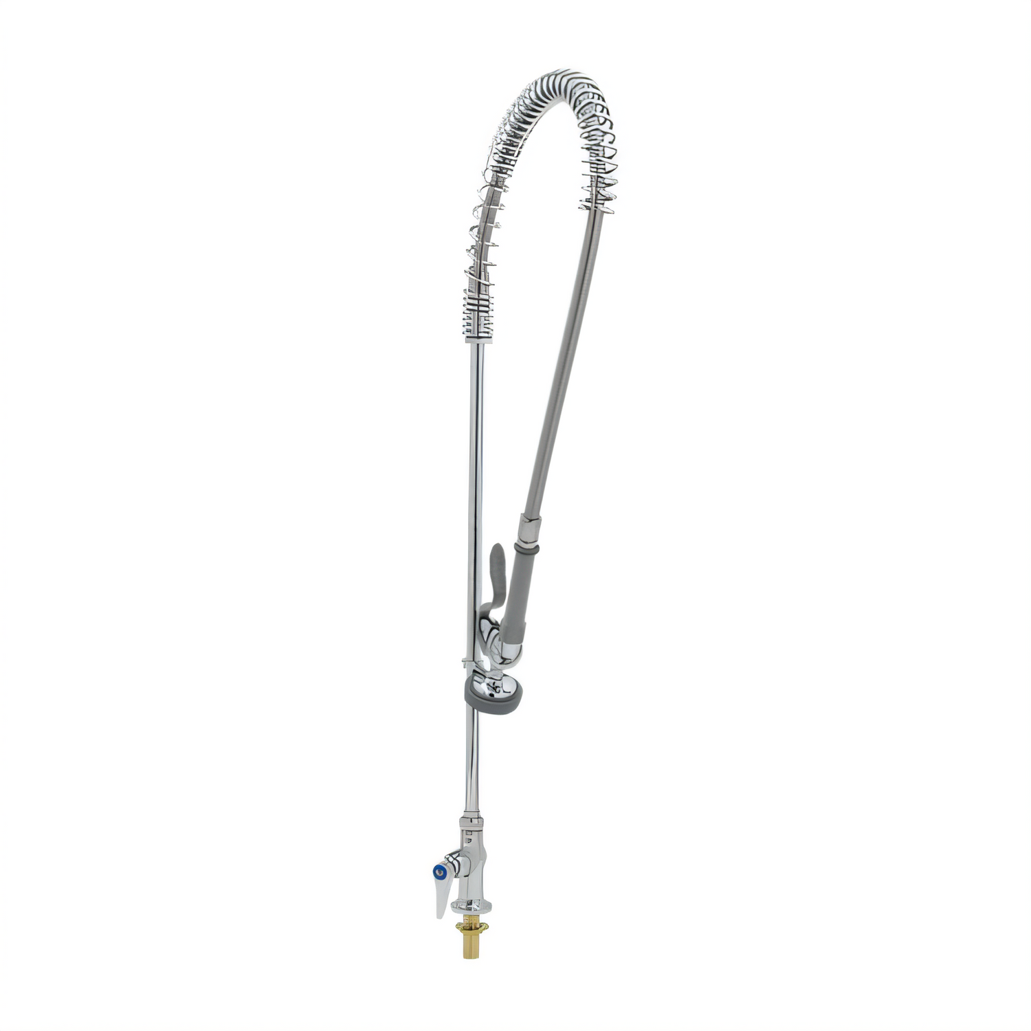 Pre-Rinse Unit, deck mount, single hole base, single temperature control, spring action gooseneck, 1.15 GPM spray valve (B-0107), 24" riser, 44" flexible stainless steel hose, 1/2" NPSM male inlet, lever handle, quarter-turn Eterna cartridge, low lead, 2019 DOE PRSV - Class II