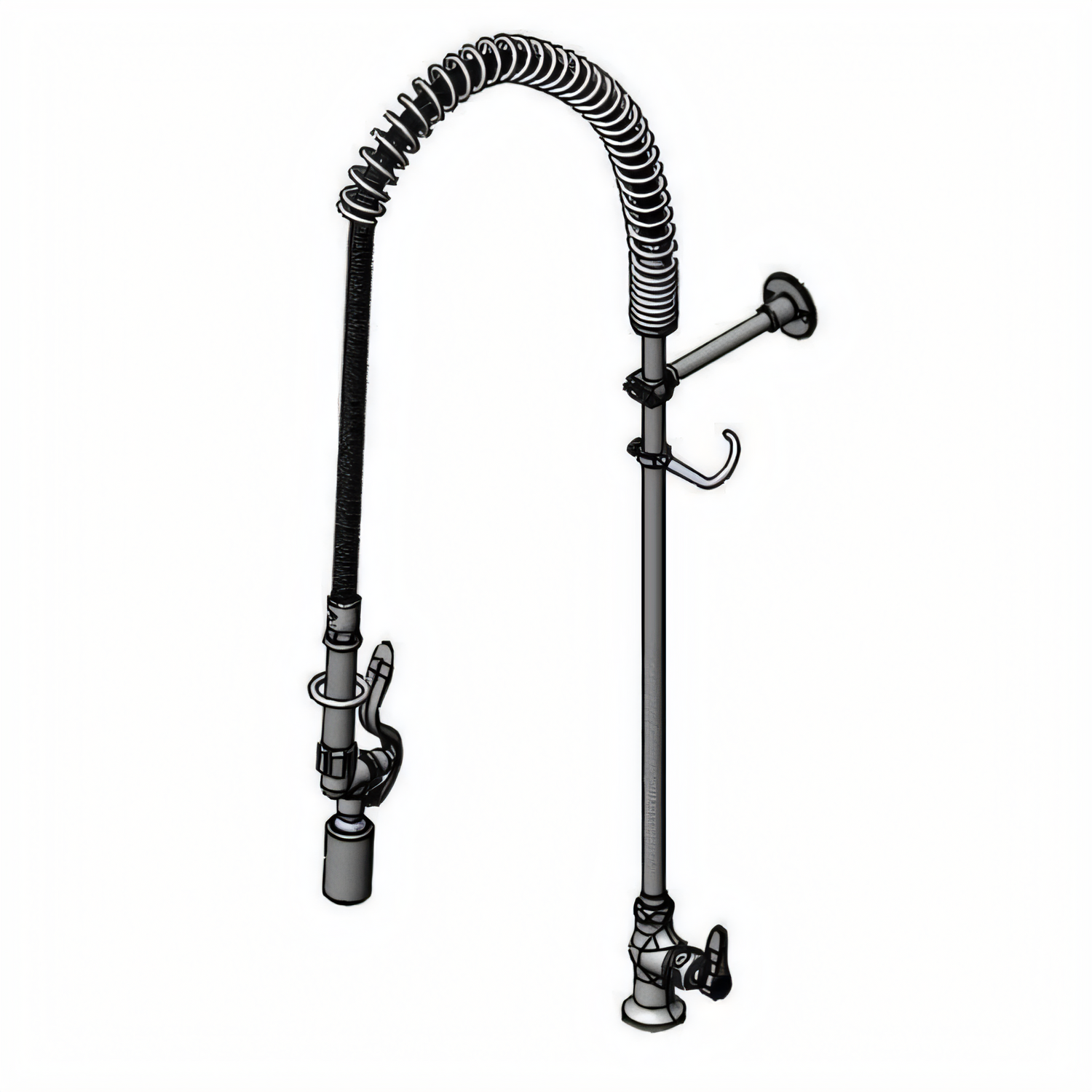 Pre-Rinse Unit, deck mount, single hole base, single temperature control, spring action gooseneck, low flow 0.65 GPM spray valve (B-0107-C), 24" riser, 44" flexible stainless steel hose, 1/2" NPSM male inlet, lever handle, quarter-turn Cerama cartridge, low lead, 2019 DOE PRSV - Class II