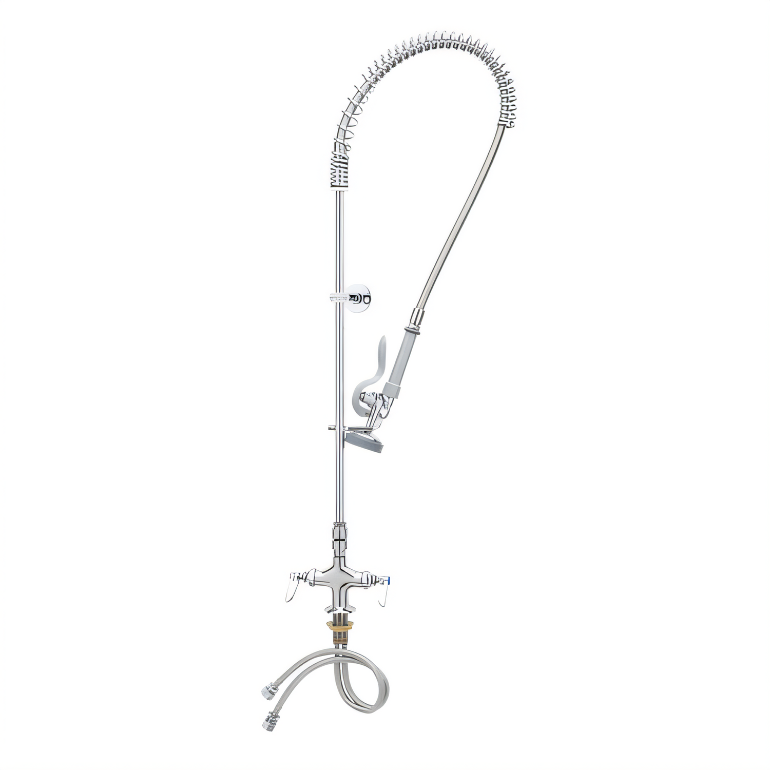 EasyInstall Pre-Rinse Unit, deck mount, single hole, 1.15 GPM spray valve (B-0107), vacuum breaker, 24" riser, 44" flexible stainless steel hose, 18" flexible supply lines, 6" wall bracket, quarter-turn Eterna cartridges, low lead, 2019 DOE PRSV - Class II