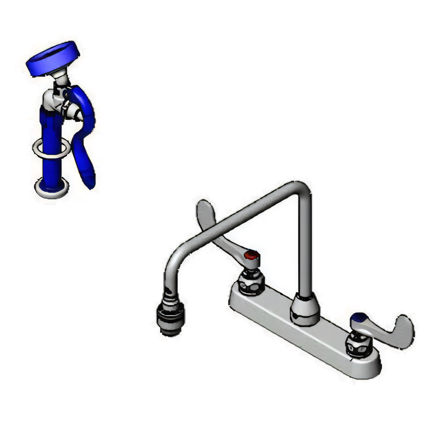 Faucet Workboard, deck mount, with spray valve, 8" center, vacuum breaker gooseneck, 4" wrist action handles, ADA Compliant