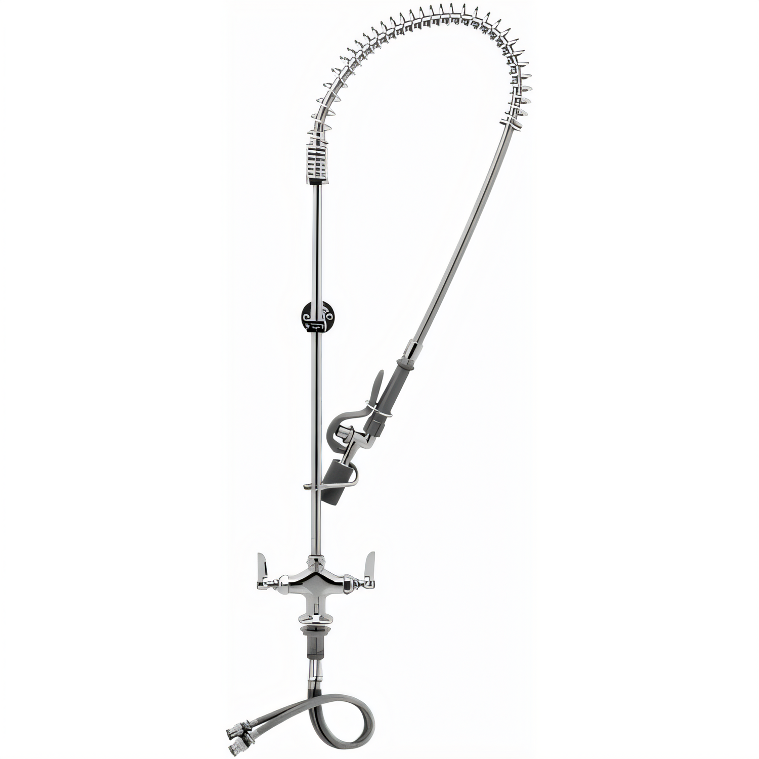 Pre-Rinse Unit, deck faucet, low flow 0.65 GPM spray valve (B-0107-C), 24" riser, 44" flexible stainless steel hose, 18" flexible supply lines, 12" wall bracket, quarter-turn Eterna cartridges, low lead, 2019 DOE PRSV - Class II