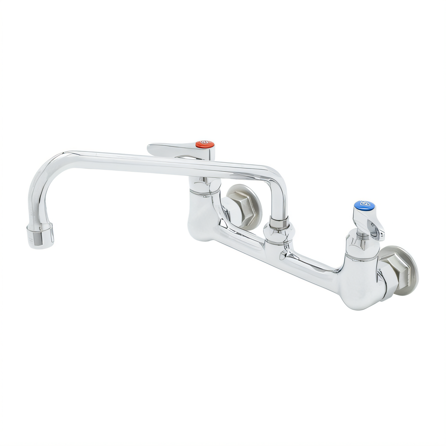 Double Pantry Faucet, wall mount, 8" OC, 10" swivel spout with stream regulator, lever handles, ceramas cartridges with check valves, includes 1/2" NPT male elbow installation kit, low lead, ADA Compliant