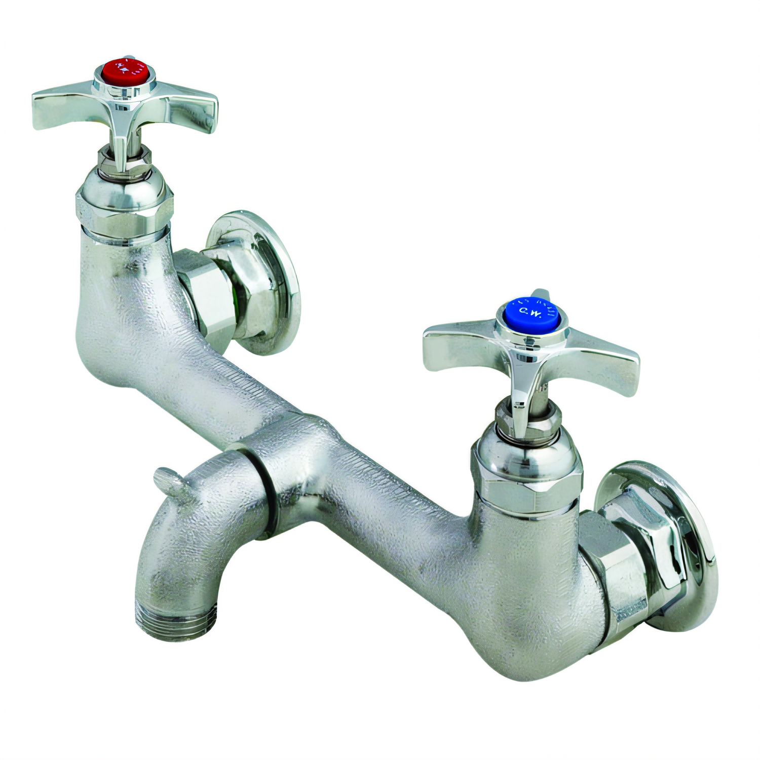 Service Sink Faucet, splash-mounted, 8" centers, 4-arm handles, 1/2" NPT female inlets, male garden hose thread outlet, rough chrome finish