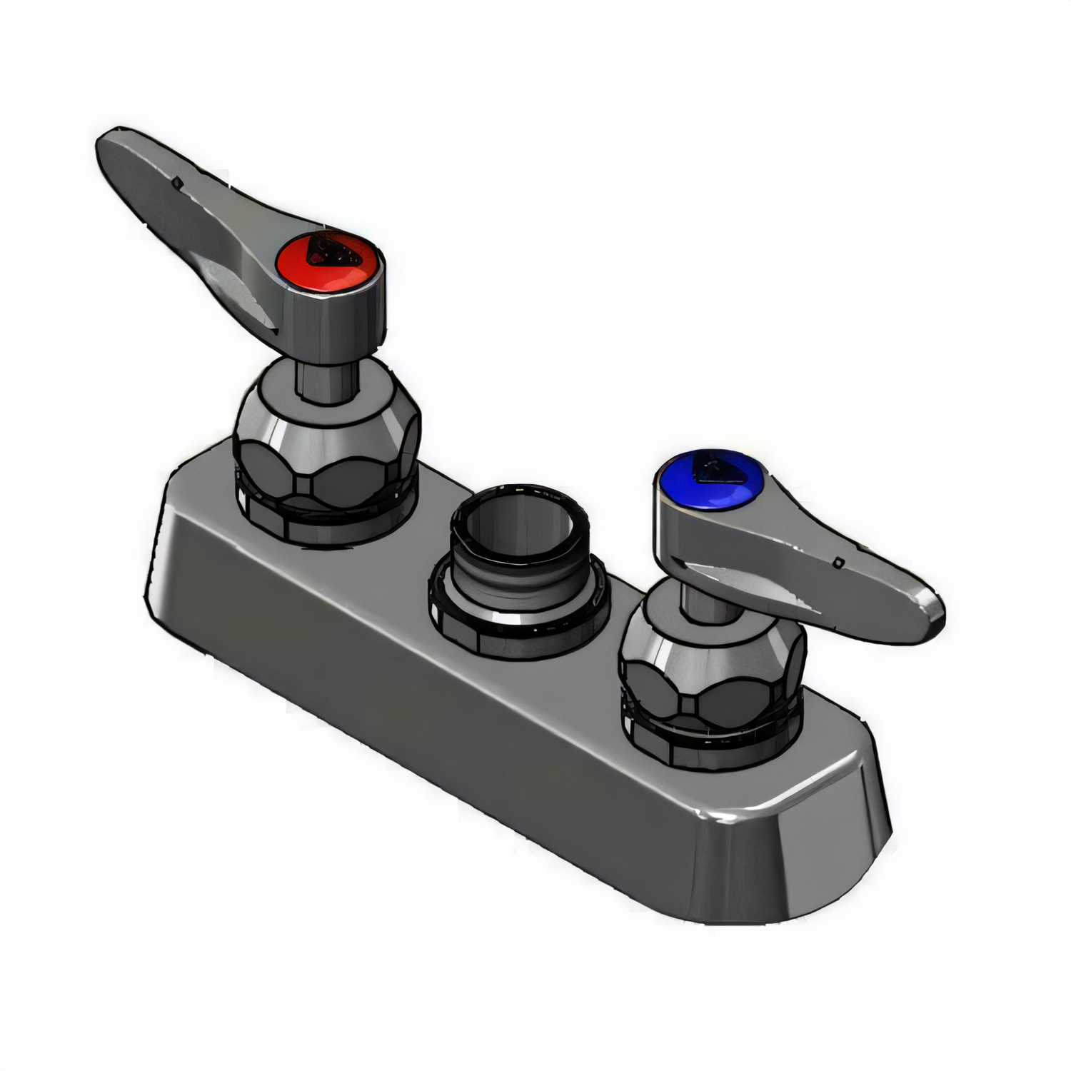 Workboard Mixing Faucet, deck mount, 4" centers, less nozzle (swivel outlet accepts swing nozzles), lever handles with color coded indexes, quarter-turn Cerama cartridges with check valves, 1/2" NPT male inlets, low lead, ADA Compliant