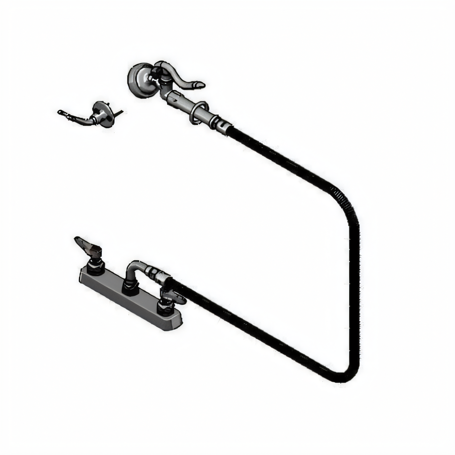 Workboard Mixing Faucet, deck mount, 8" centers, 1.15 GPM angled spray valve (B-0107-035), 68" flexible stainless steel hose, quarter-turn Eterna cartridges with spring checks, lever handles with color coded indexes, hose hanger hook, 1/2" NPT male inlets, low lead, 2019 DOE PRSV - Class II