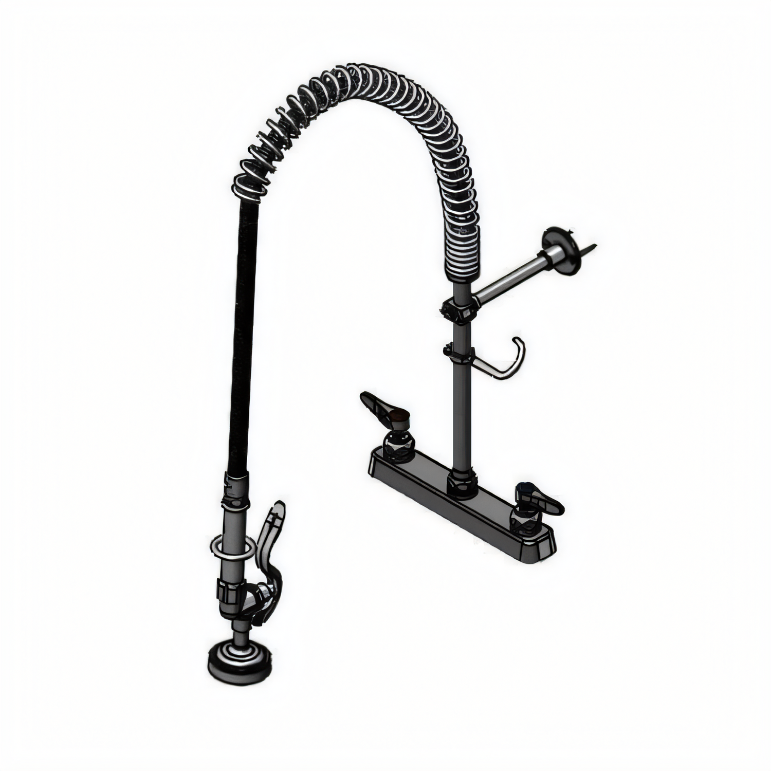 EasyInstall Pre-Rinse Unit, deck mount, 8" center, spring action gooseneck, 1.15 GPM spray valve (B-0107), 12" riser, 44" flexible stainless steel hose, 6" wall bracket, 1/2" NPT male inlets, lever handles, quarter-turn Eterna cartridges, low lead, 2019 DOE PRSV - Class II