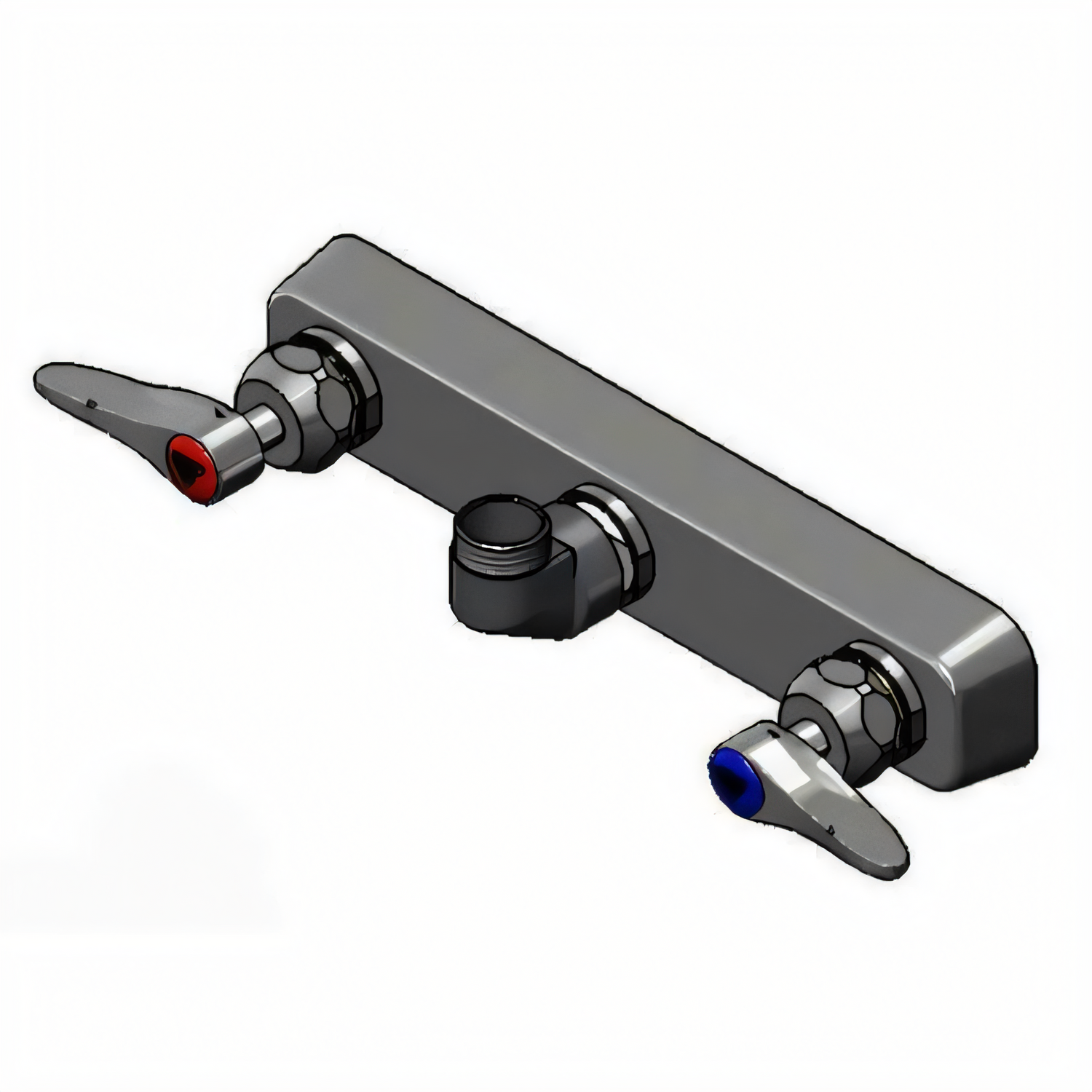 Workboard Mixing Faucet, wall mount, 8" centers, less nozzle (swivel outlet accepts swing nozzles), quarter-turn Cerama cartridges with check valves, lever handles with color coded indexes, 1/2" NPT male inlets, low lead, ADA Compliant