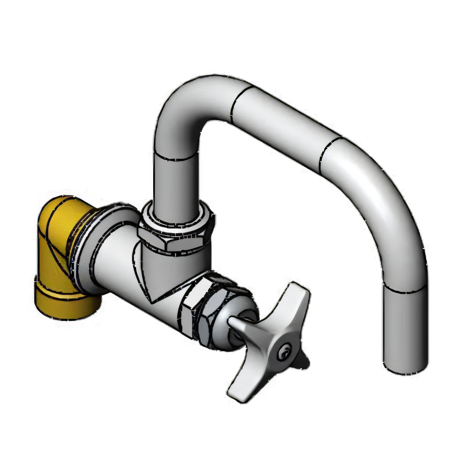 Big-Flo Faucet, wall mount, 6-1/2" swivel nozzle, 4 arm handle, 3/4" NPT street elbow, ADA Compliant