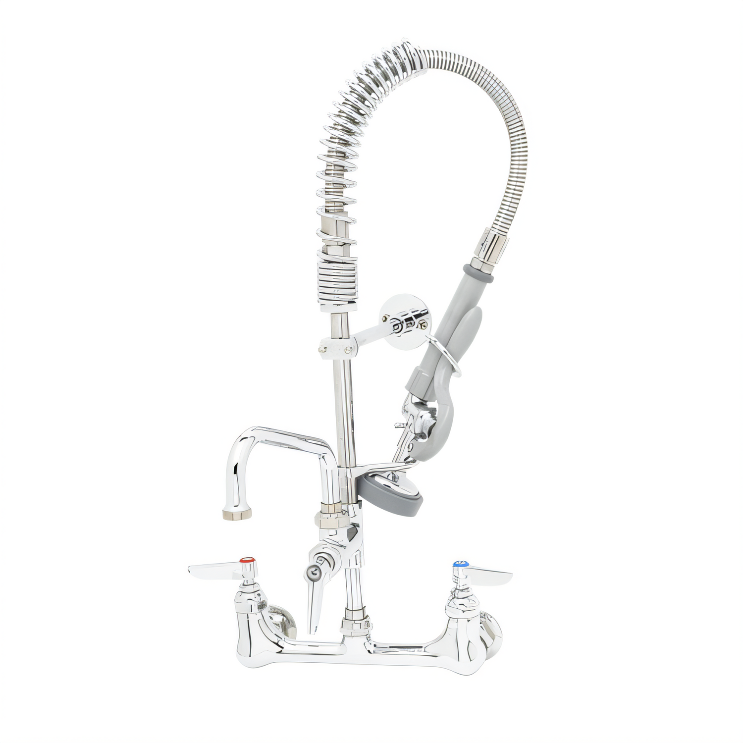 EasyInstall Mini Pre-Rinse Units, wall mount, 8" center, 8" swivel add-on nozzle, decorative club handle, ceramic cartridge, stream regulator tip, 24" stainless steel flex hose, 6" wall bracket, low lead, 1.42 GPM angled spray valve, 1/2" NPT, EPAct2005 compliant, NSF