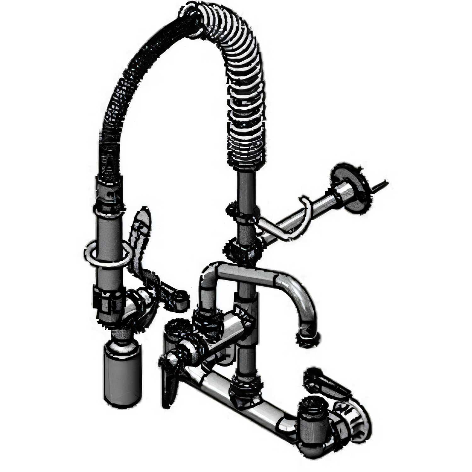 Mini Pre-Rinse Unit, 8" wall mount base faucet, compact spring & flex hose, low flow spray valve, 6" wall bracket, lever handles, 8" add on faucet