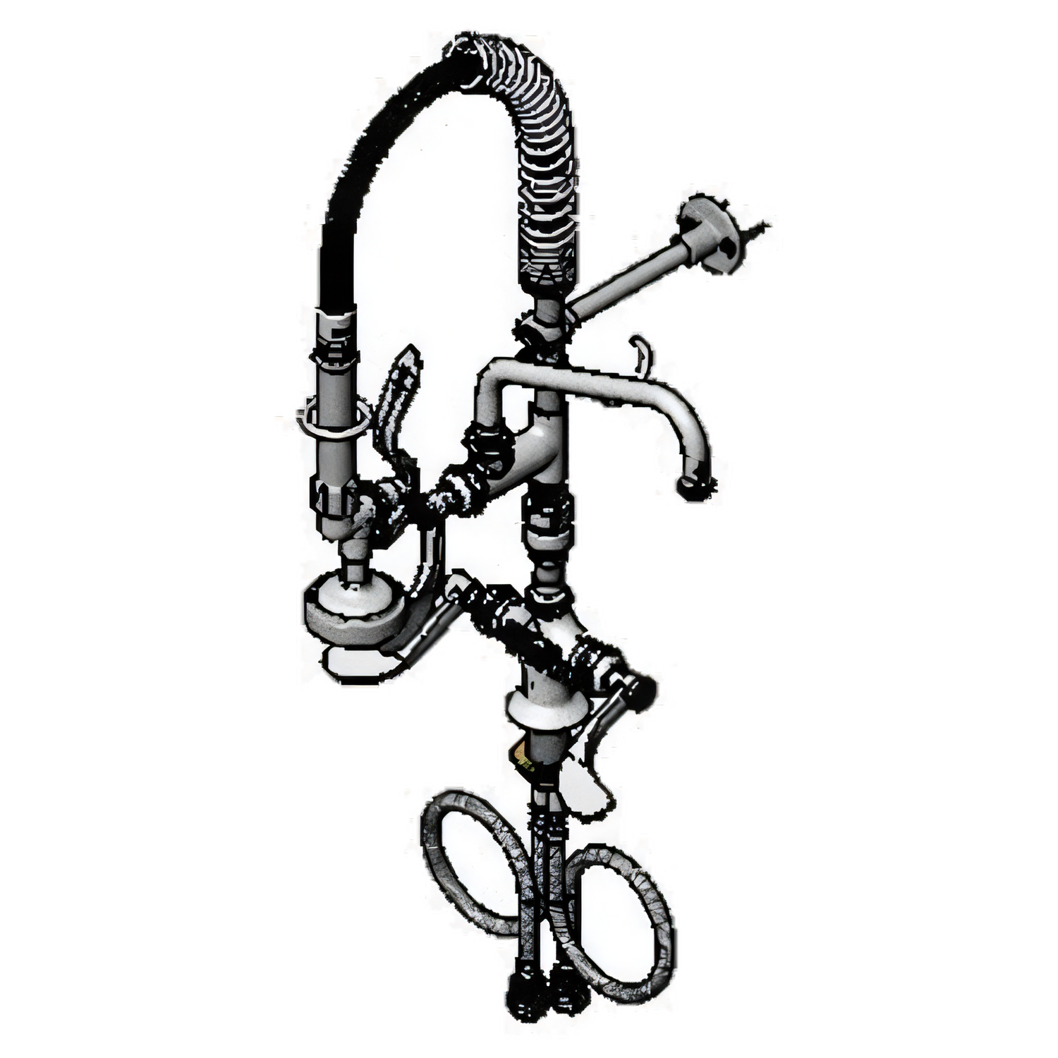 EasyInstall Mini Pre-Rinse Units, deck mount, single hole, EasyInstall 8" swivel add-on nozzle with stream regulator tip, 4" wrist action handles with color coded indexes, quarter-turn Cerama cartridges with check valves, continuous pressure vacuum breaker, 24" stainless steel flex hose, 6" adjustable wall bracket, 1.15 GPM, 1/2" NPT, low lead, cCSAus