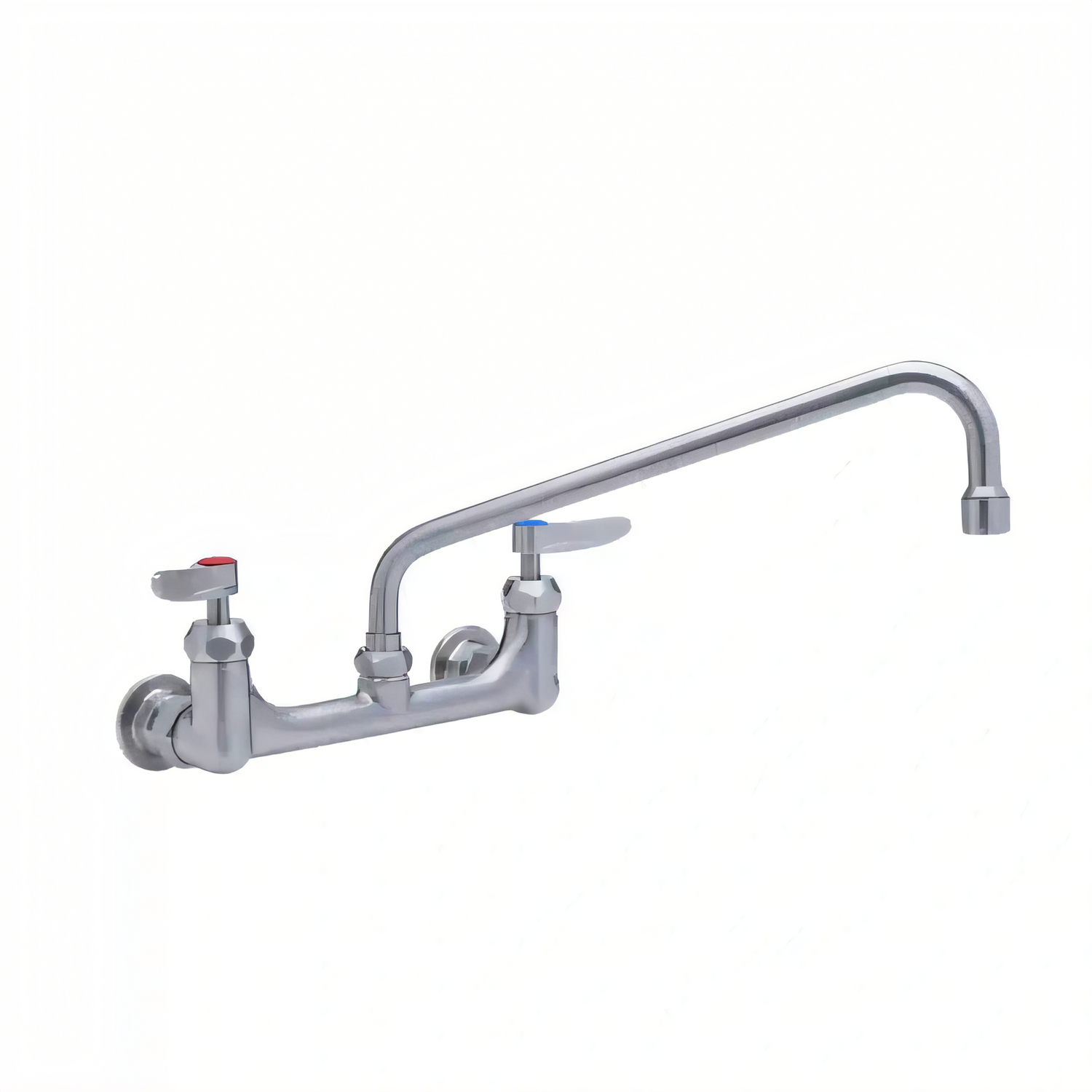 UltraRinse 8” wall mount mixing faucet , 12” swing nozzle with stream regulator outlet, ceramic cartridges with check valves, lever handles, and 1/2” NPT female inlets, stainless steel construction, Certified to ASME A112.18.1/CSA B125.1, NSF 61-Section 9 and NSF 372. Meets ADA ANSI/ICC A117.1 requirements.