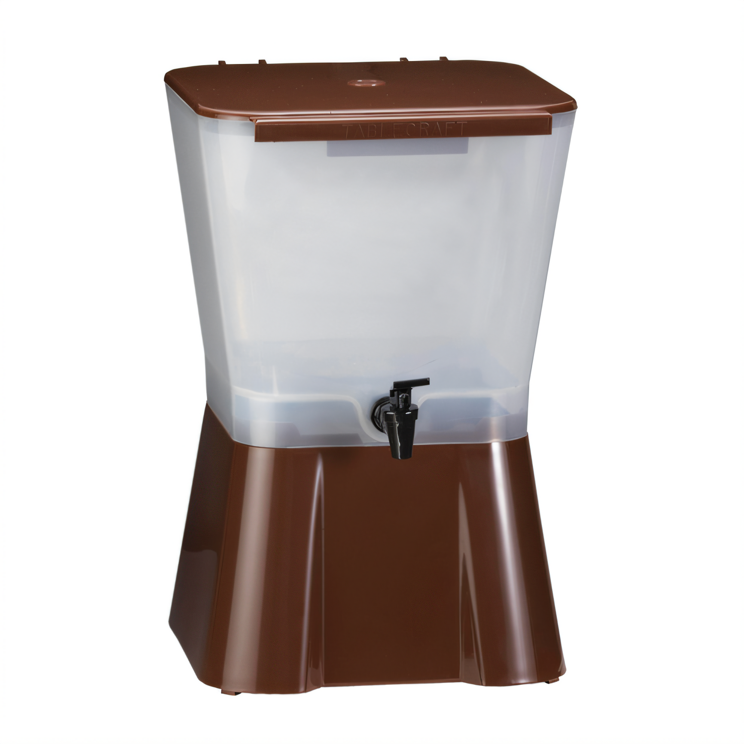 Beverage Dispenser, 3 gallon, 10-7/8" x 12-1/2" x 16-3/4"H, 7" faucet clearance, single, standard Tomlinson® faucet, dishwasher safe, FDA approved polypropylene, brown, NSF (1 each minimum order)