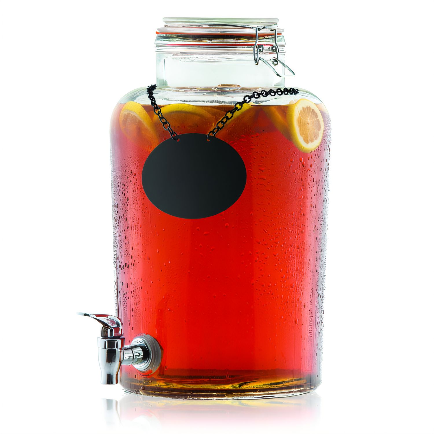 Cash & Carry Rustic Country™ Beverage Dispenser, 2-1/2 gallon, 8-1/4" x 10-1/2" x 14", hand wash only, includes: chalkboard necklace, glass (1 each minimum order)