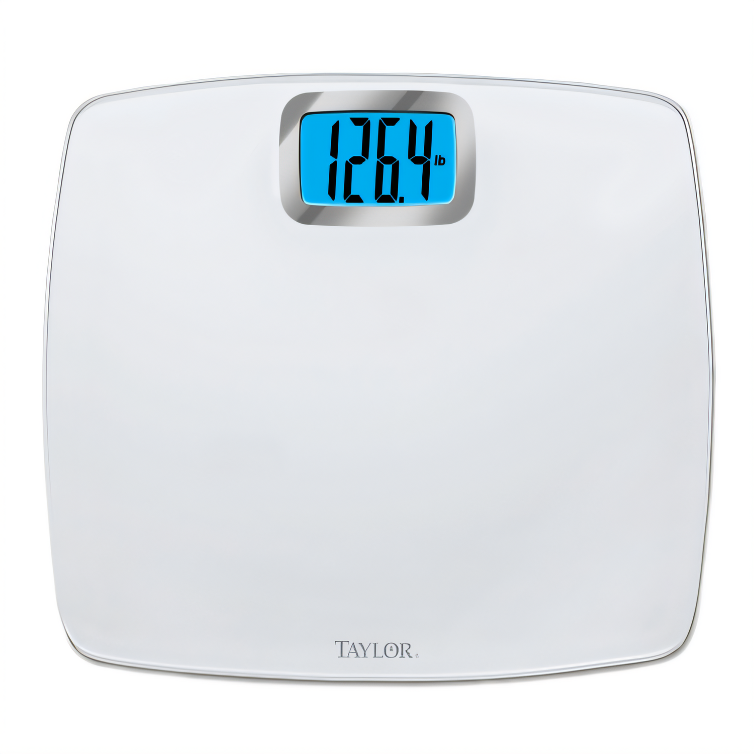 Taylor Precision 440 lb digital bath scale with tempered glass platform, blue backlight, precise readings—bulk case purchase required.