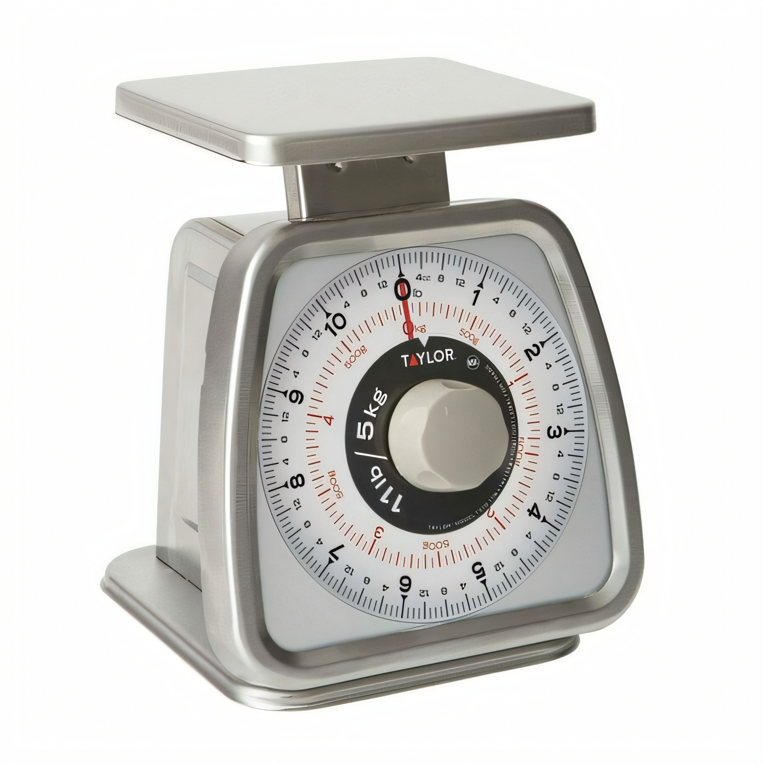 Taylor Precision TS10 analog portion control scale, 11 lb/5 kg capacity, dual oz/g measure, stainless steel, angled rotating dial for easy reading