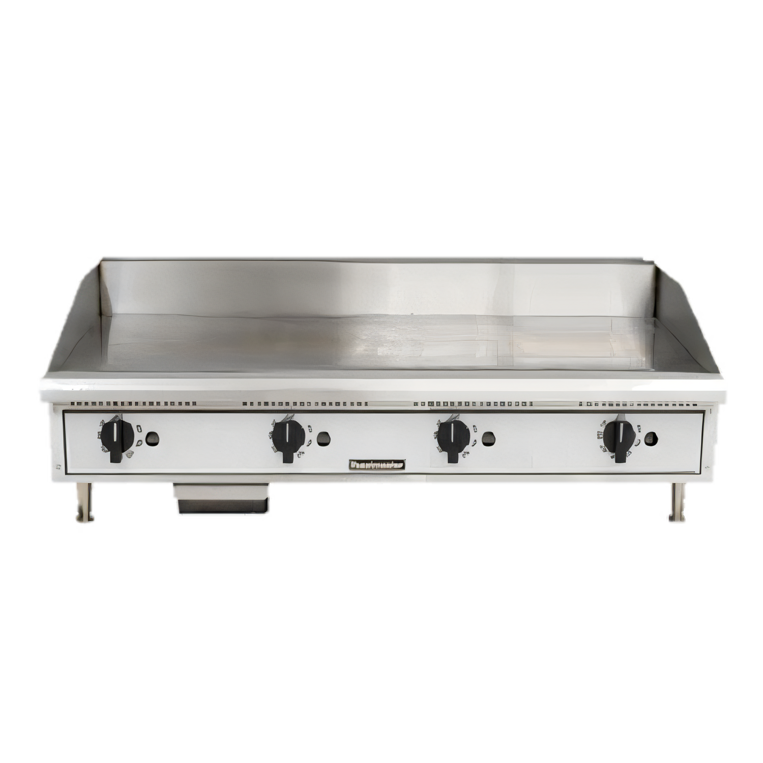 48" Toastmaster TMGT48 natural gas countertop griddle: 3/4" polished steel, 4 zones, 80,000 BTU, thermostatic controls, grease chute, cULus, Made in USA