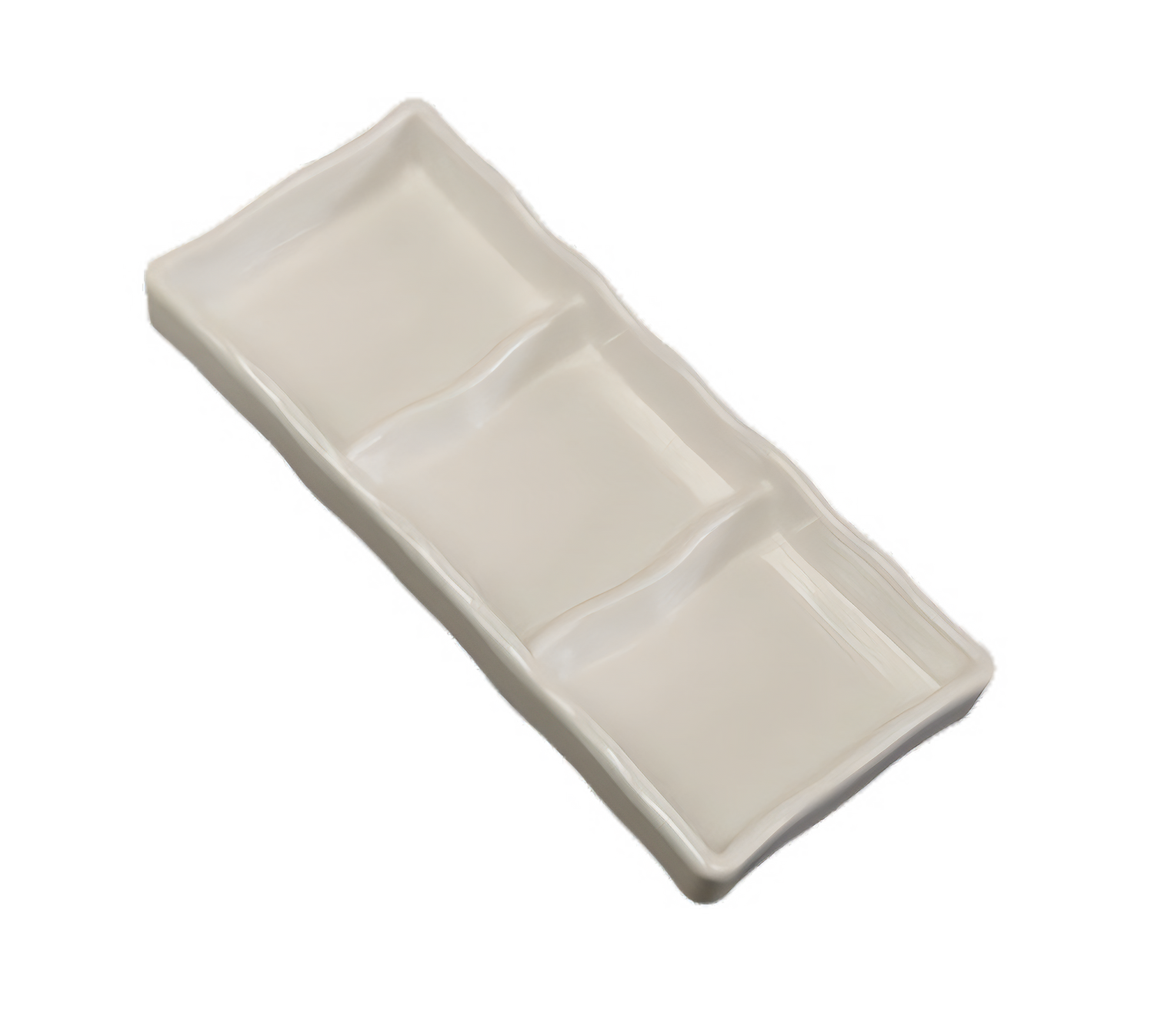Sauce Dish, three compartment, 7-1/2" x 3-1/4", temperature range: -22°-248°F, melamine, ivory (priced per dozen)