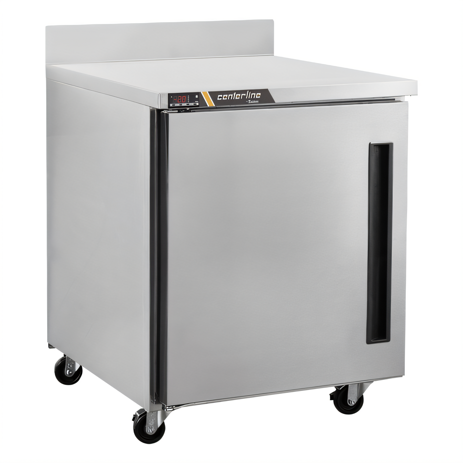 Centerline™ Compact Undercounter Freezer with Work Top, 27"W, 6.5 cu. ft. capacity, self-contained rear-mount refrigeration, (1) right hinged solid door (field reversible), electronic control with LED display, (2) epoxy coated shelves per section, 4" backsplash, stainless steel exterior, anodized aluminum interior, (4) casters, R290 Hydrocarbon refrigerant, 1/2 HP, 115v/60/1-ph, 5.3 amps, NEMA 5-15P, cETLus, ETL-Sanitation, ENERGY STAR™