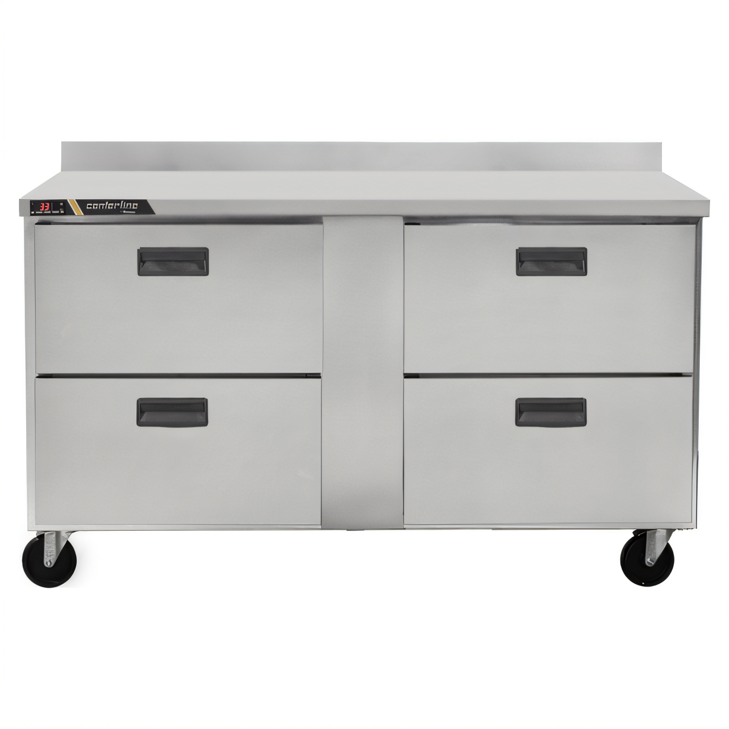 Centerline™ Compact Undercounter Freezer with Work Top, two-section, 60"W, 16.94 cu. ft. capacity, self-contained rear-mount refrigeration, (4) drawers, electronic control with LED display, 4" backsplash, stainless steel exterior, anodized aluminum interior, (4) casters, R290 Hydrocarbon refrigerant, 1/2 HP, 115v/60/1-ph, 6.8 amps, NEMA 5-15P, cETLus, ETL-Sanitation