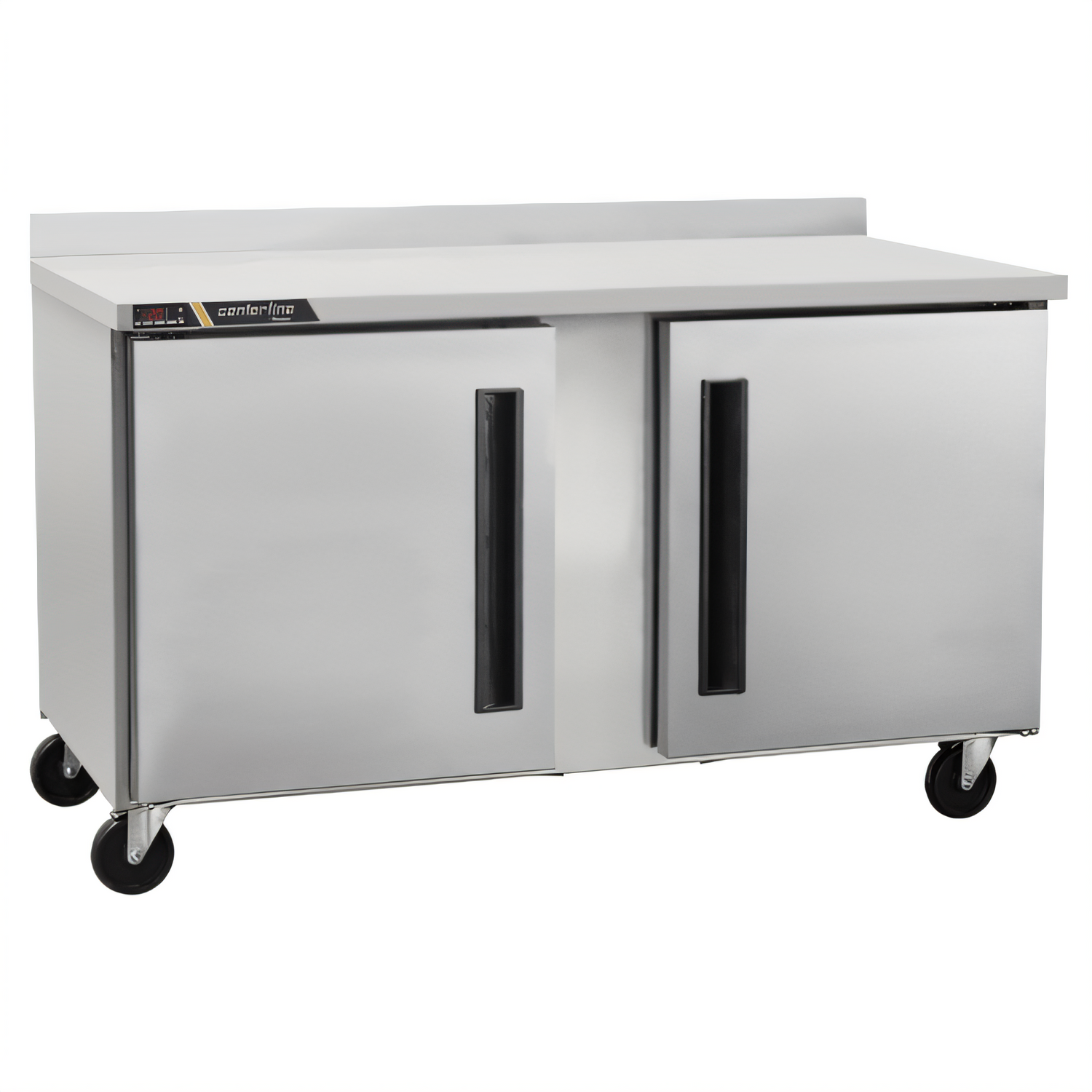 Centerline™ Compact Undercounter Freezer with Work Top, two-section, 60"W, 16.94 cu. ft. capacity, self-contained rear-mount refrigeration, (1) left hinged/ (1) right hinged solid doors (field reversible), electronic control with LED display, (2) epoxy coated shelves per section, 4" backsplash, stainless steel exterior, anodized aluminum interior, (4) casters, R290 Hydrocarbon refrigerant, 1/2 HP, 115v/60/1-ph, 6.8 amps, NEMA 5-15P, cETLus, ETL-Sanitation, ENERGY STAR®