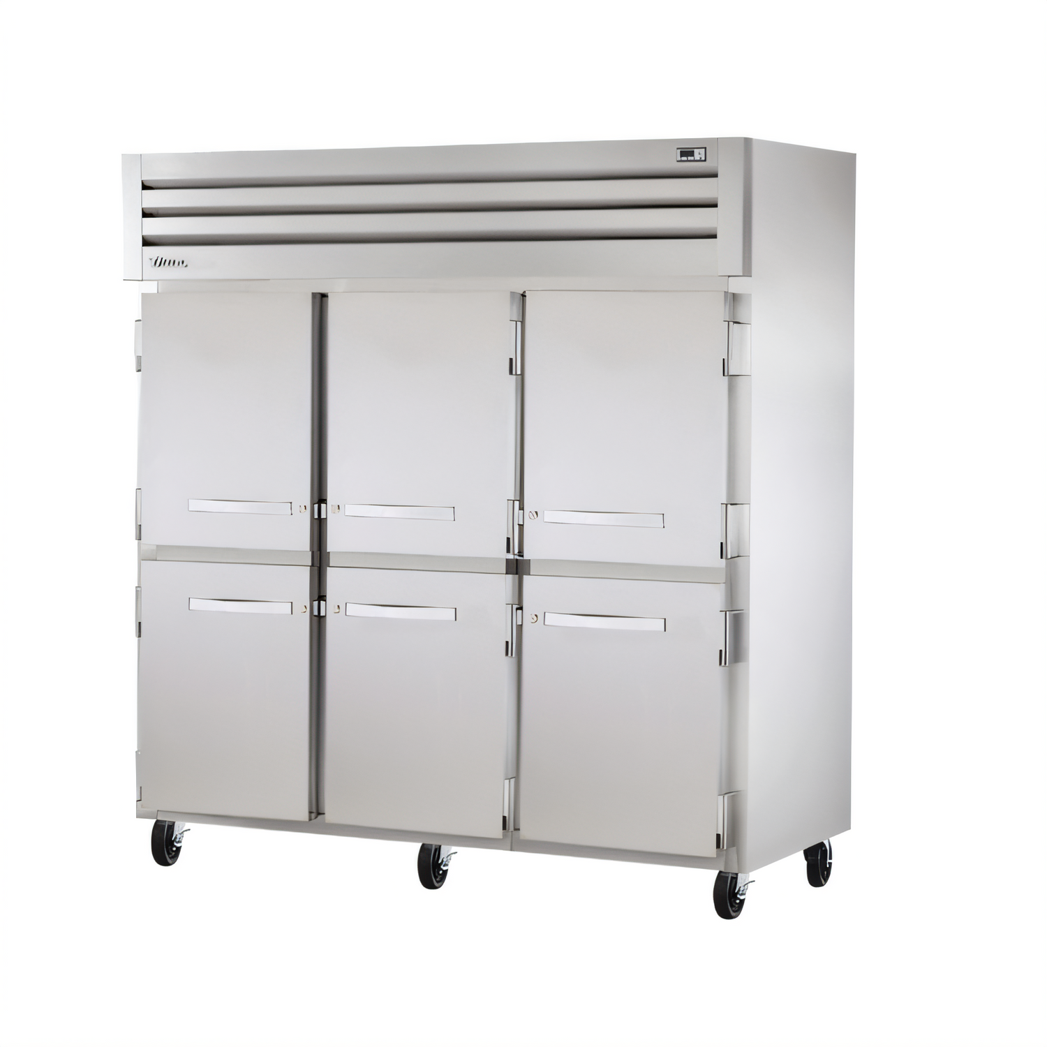 -10 °F holding | six stainless half doors | top-mounted refrigeration | 115 VBuilt in the USA for kitchens that refuse to compromise, the True STR3F-6HS delivers rock-solid -10 °F performance, all-stainless durability, and the labor-saving innovations you expect from True’s flagship SPEC SERIES® line.