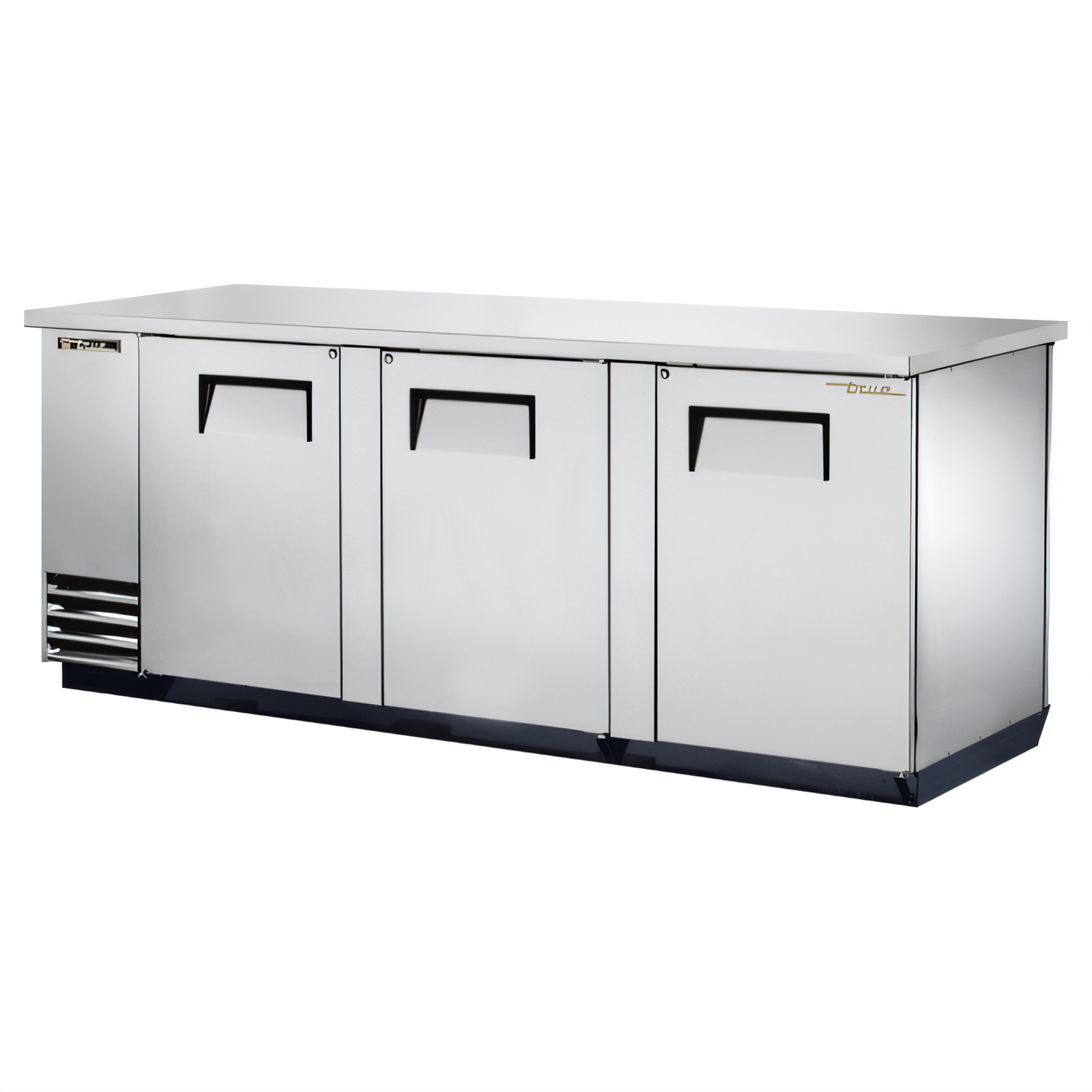 90-3/8″ three-section · 152 six-packs or 4 half-keg capacity · Made in USABuilt for the busiest bars, nightclubs and venues, the True TBB-4PT-S keeps product ice-cold, secure and easy to access from either side of the counter. 100 % stainless steel on the outside, oversized refrigeration on the inside – this is the last back-bar you’ll buy for years to come.