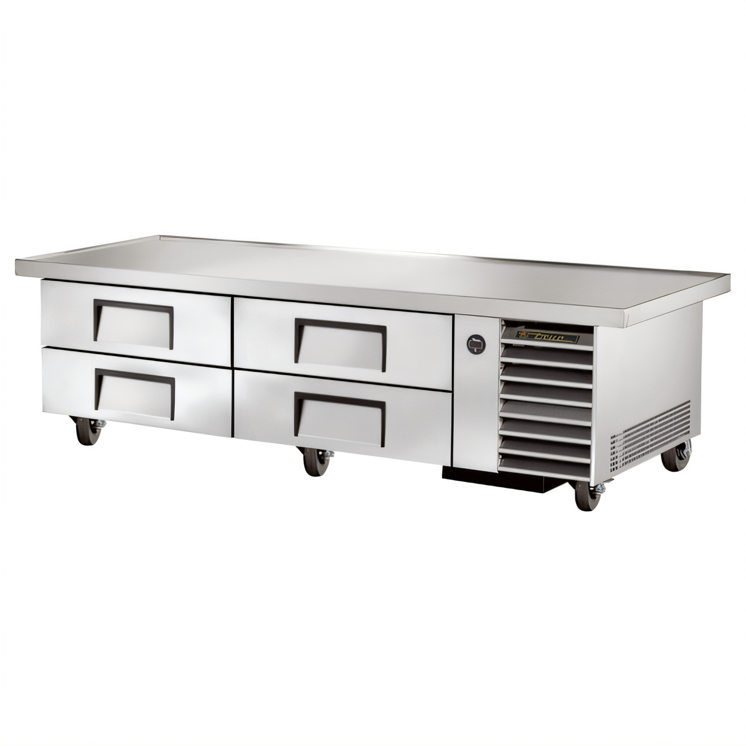 86-1/4" V-Edge Top • 4 Drawers • 1/3 HP • 115 VBuilt in the USA for demanding commercial kitchens, the True TRCB-79-86-HC keeps your most-used ingredients ice-cold right where you cook. A reinforced 300-series stainless steel top supports up to 1,084 lb, while the high-performance R290 refrigeration system holds a steady 33-38 °F for superior food safety and rapid recovery between drawer openings.