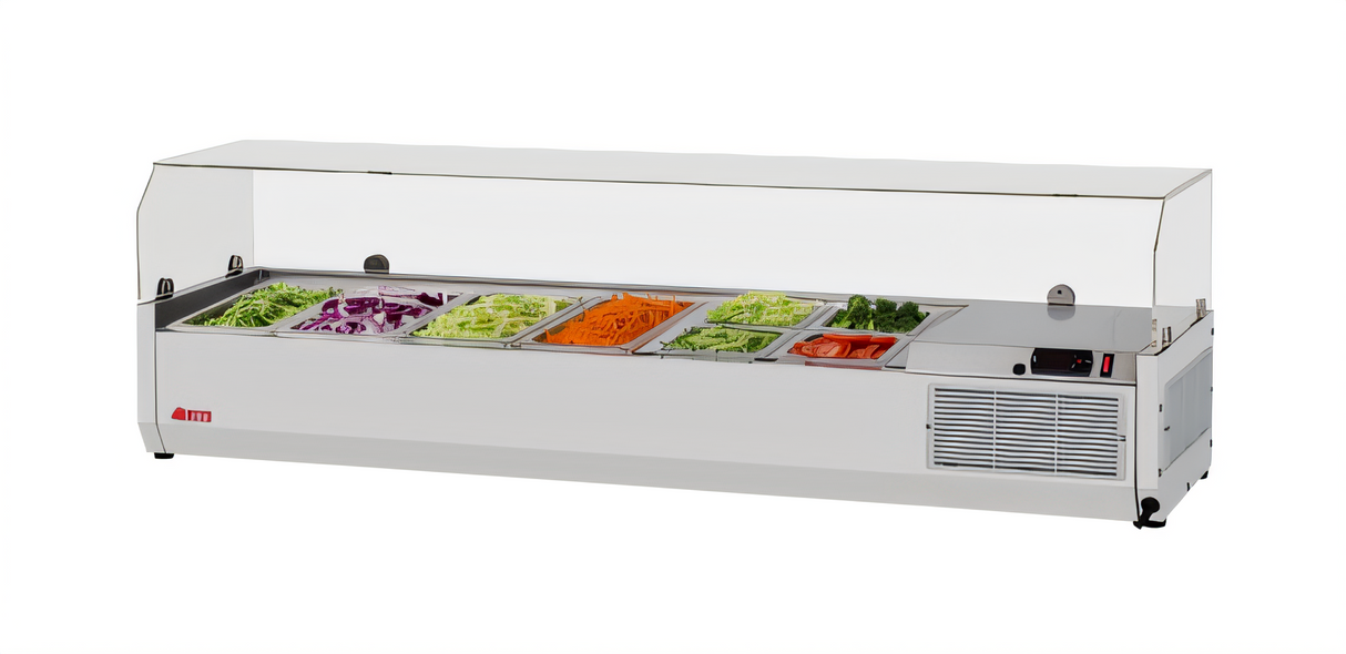 Model CTST-1500G-13-N | Turbo AirBuilt for compact prep lines, grab-&-go kiosks, and made-to-order stations, the Turbo Air E-Line countertop salad table keeps your freshest ingredients chilled, visible, and within arm’s reach—all while taking up less than 16" of counter depth.