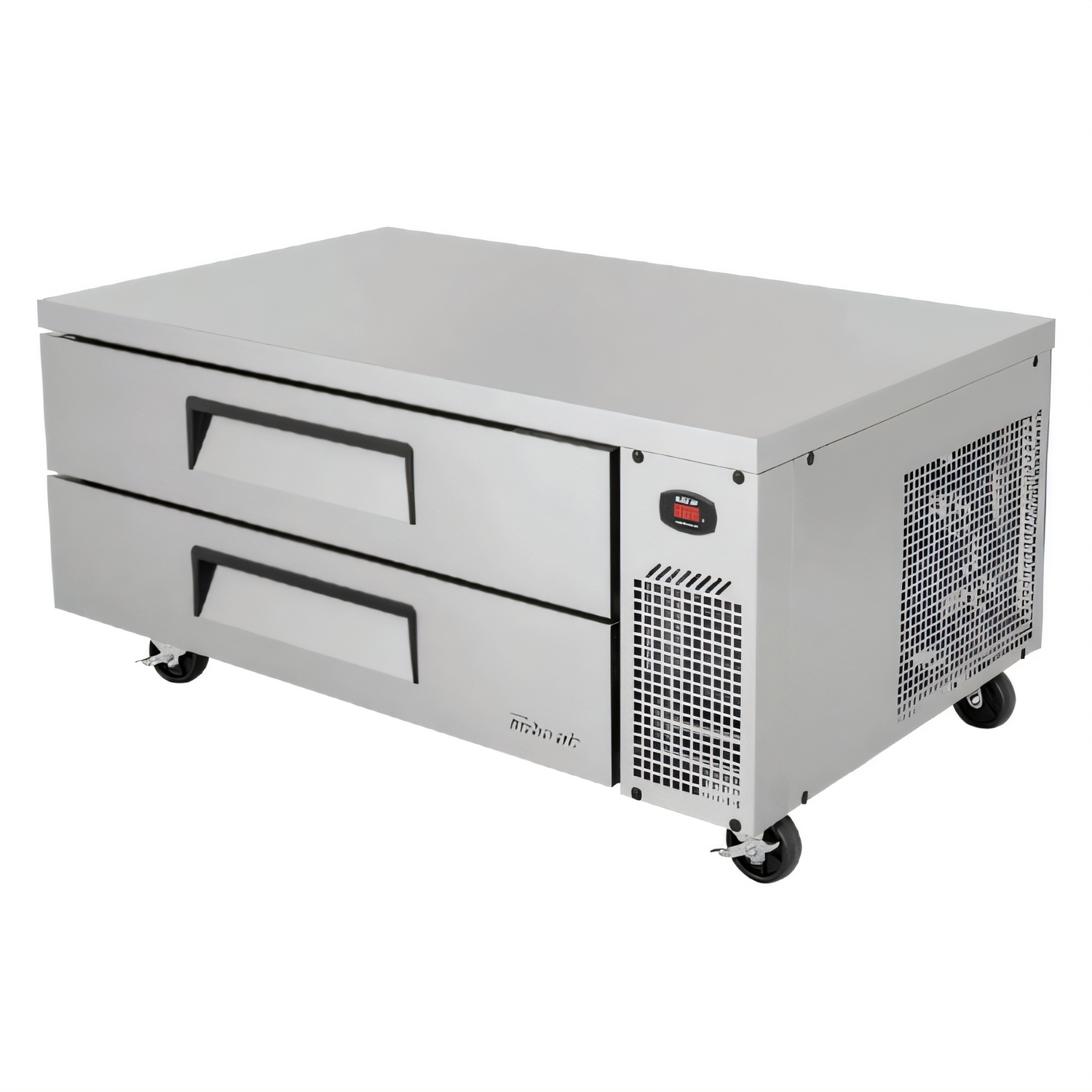 Turbo Air Model TCBE-52SDR-NKeep ingredients safely chilled right where the action happens. The Turbo Air Super Deluxe chef base pairs 9.1 cu. ft. of refrigerated storage with a 16-gauge one-piece stainless work surface that supports up to 788 lb. of countertop equipment—perfect for griddles, charbroilers, or induction ranges. A patented self-cleaning condenser and eco-friendly R-290 refrigerant deliver commercial reliability with lower energy and service costs.