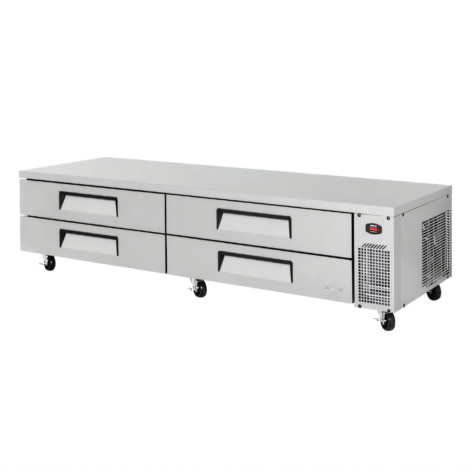 Model TCBE-96SDR-N | 4-Drawer Side-Mounted Self-Contained UnitMaximise your cookline efficiency with the Turbo Air Super Deluxe chef base that keeps 18.6 cu. ft. of chilled ingredients right where you need them—directly beneath up to 1,435 lb of countertop equipment. From its patented self-cleaning condenser to its heavy-duty 16-gauge stainless top, this is the rugged, low-maintenance refrigeration solution kitchens count on every shift.