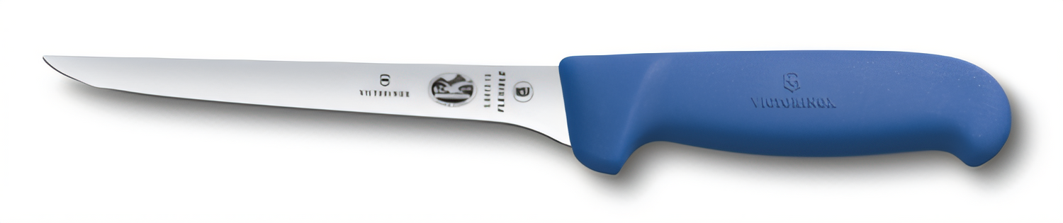 Boning Knife, 6" straight, narrow, flexible blade, blue Fibrox® Pro handle, high carbon steel, slip resistant, NSF