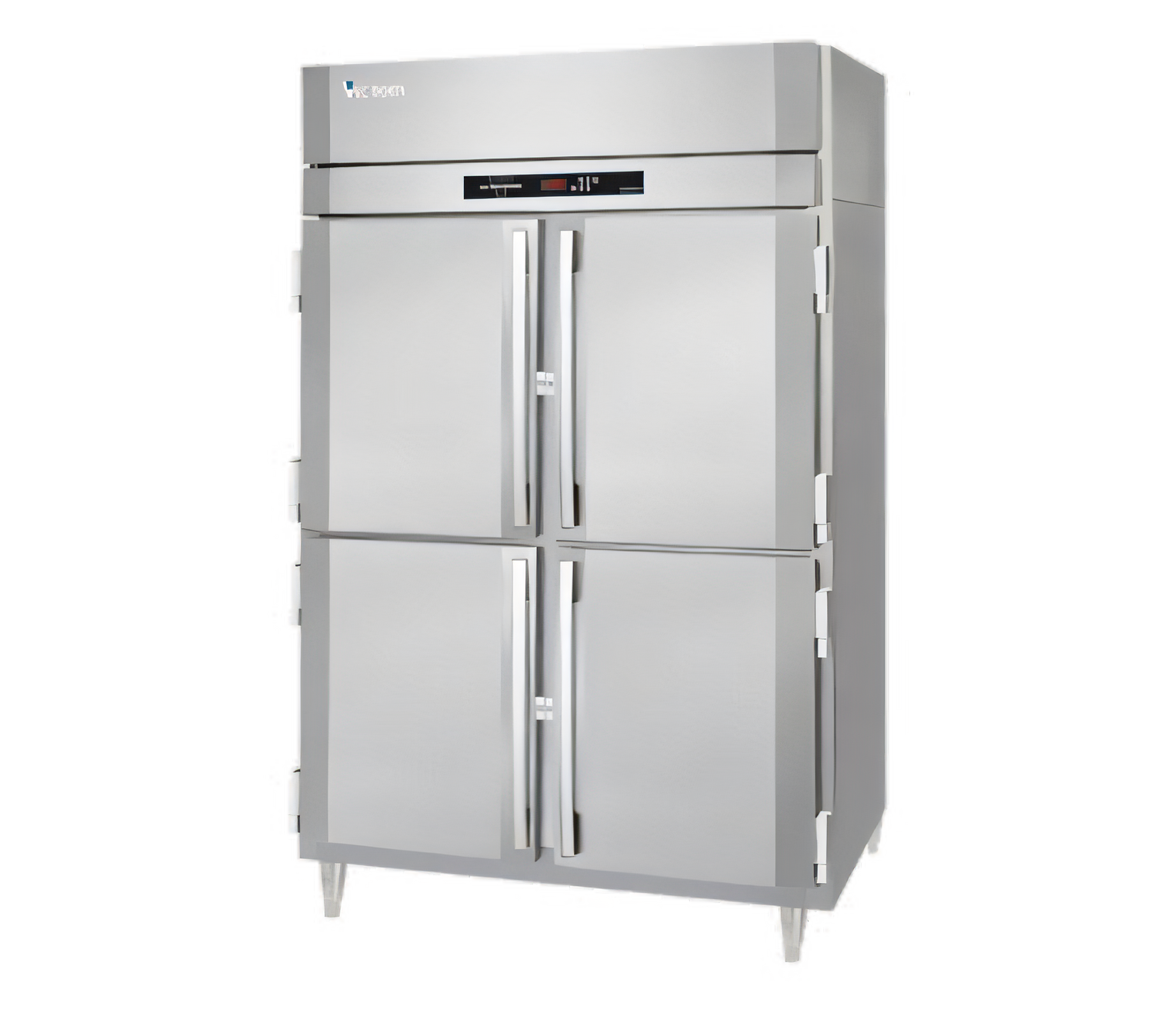 UltraSpec™ Series Heated Cabinet, Powered by V-Core™, Reach-in, two-section, 46.5 cu. ft. capacity, (4) hinged doors, (6) silver freeze (chrome-style) shelves, standard depth cabinet, exterior digital thermometer, cylinder locks, half height solid doors, stainless steel exterior & interior, UL, UL EPH Classified