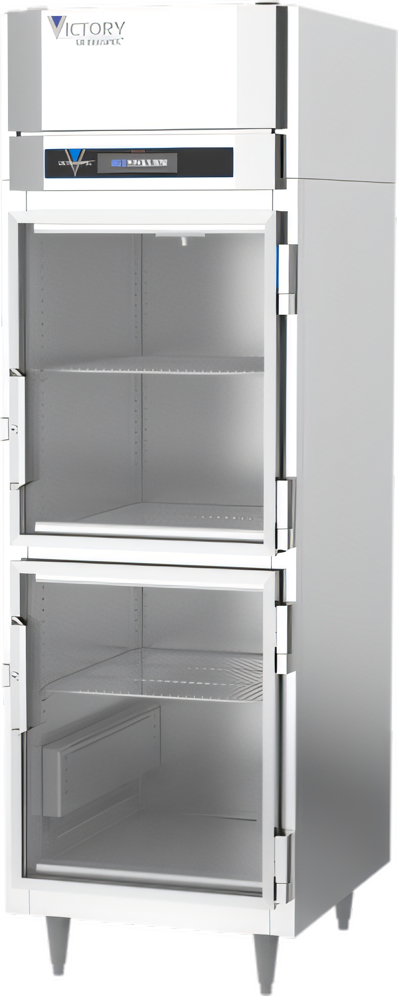 UltraSpec™ Series Heated Cabinet, Powered by V-Core™, Reach-in, one-section, 21.5 cu. ft. capacity, (2) half height hinged standard glass doors, (3) silver freeze (chrome-style) shelves, standard depth cabinet, exterior digital thermometer, cylinder locks, stainless steel exterior, aluminum interior, UL, UL EPH Classified