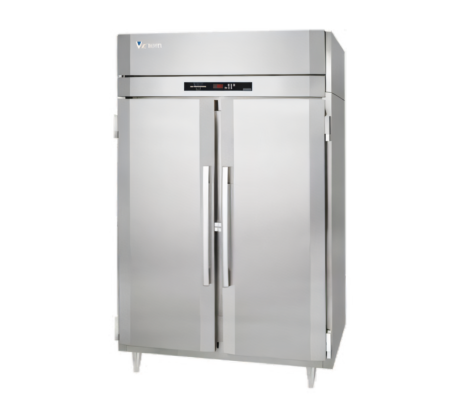 Victory Refrigeration UltraSpec™ HSA-2D-1-EW Heated Cabinet — heavy-duty, two-section reach-in holding cabinet with 52 cu. ft. capacity. V-Core™ powered unit features two full-height solid doors, six chrome-style shelves, stainless steel exterior and aluminum interior, exterior digital thermometer and cylinder locks for secure, consistent hot-holding. UL and UL EPH Classified for commercial kitchens.