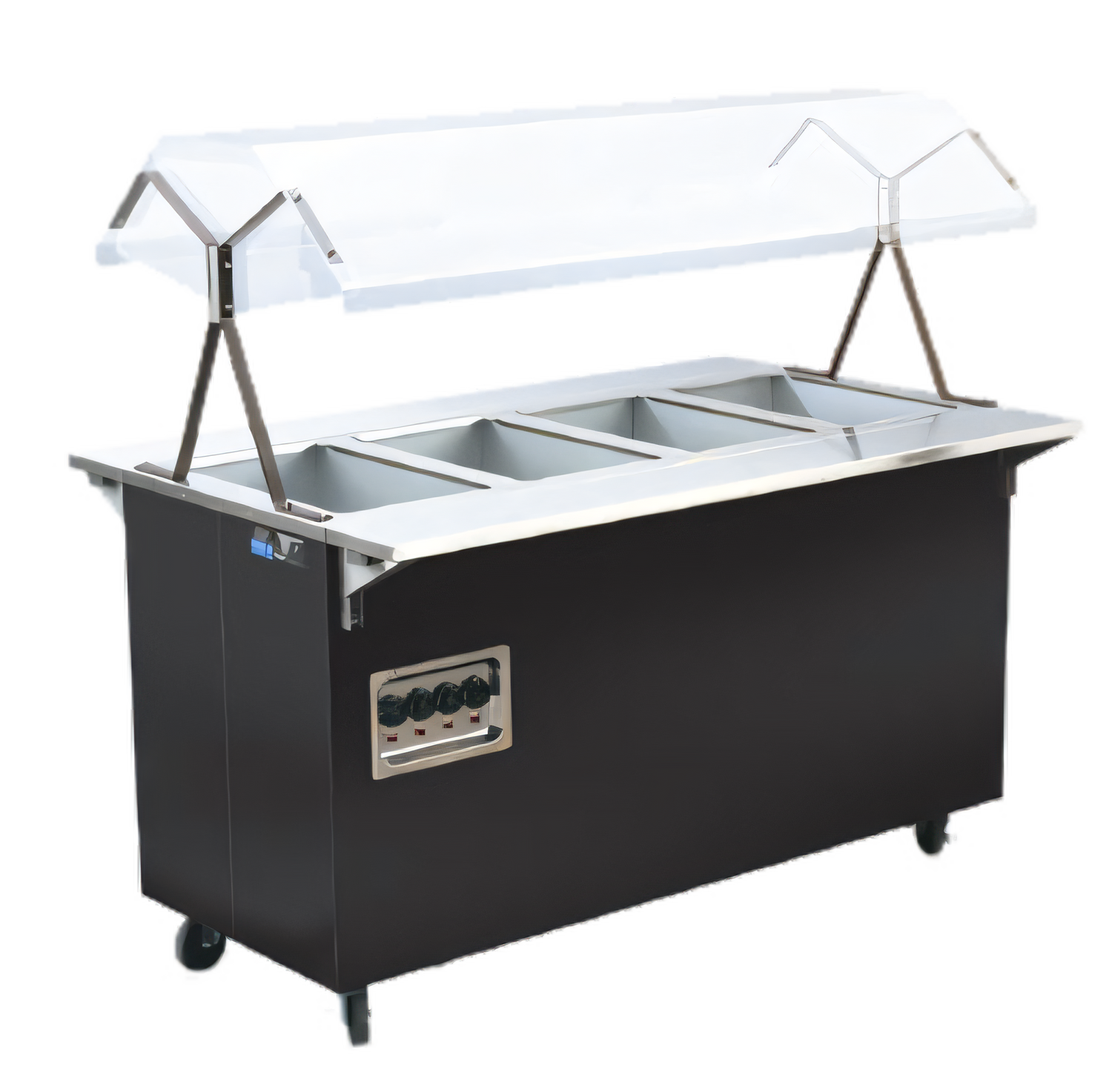 - Factory-installed buffet-style acrylic breath guard with light bar (250 W bulbs sold separately) enhances food visibility and safety.
