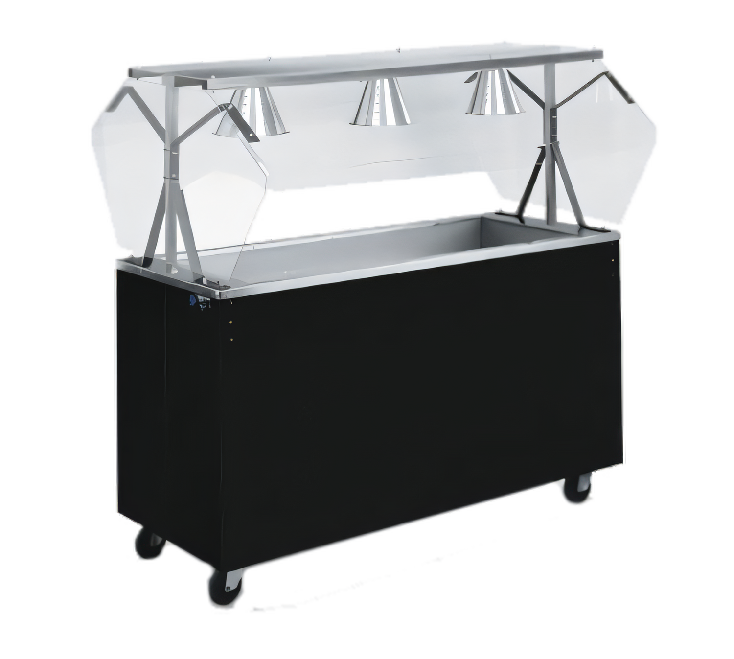 Non-Refrigerated • Buffet Breath Guard • Black Open-Storage BaseCreate a professional, mobile cold-food line anywhere you need it. Built to stand up to daily food-service demands, this made-to-order Vollrath station combines a seamless stainless well with a crystal-clear buffet breath guard and a durable black vinyl-clad base. Roll it in, fill it with ice, and you’re ready to merchandise salads, desserts, fruit, beverages and more—no electrical hookup required.