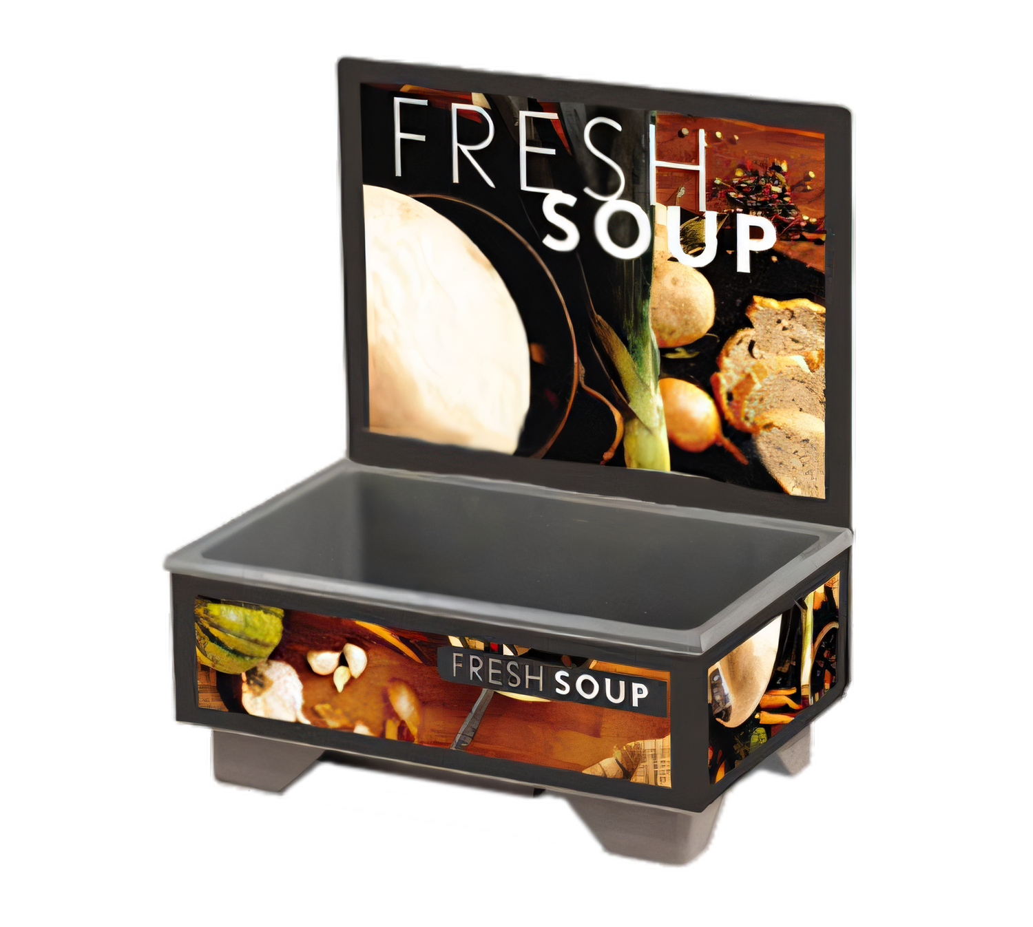 Cayenne® 72020 Full Size Rethermalizing Model 1220 Soup Merchandiser with Tuscan Graphics, BASE ONLY with FLUSH MOUNT MENU BOARD, 18-1/2" x 26-1/4" x 25-1/2", 120v/60/1-ph, 1000 watts, 8.3 amps, NEMA 5-15P, UL, NSF, Made in USA (Refer to vollrathfoodservice.com for full warranty policy)