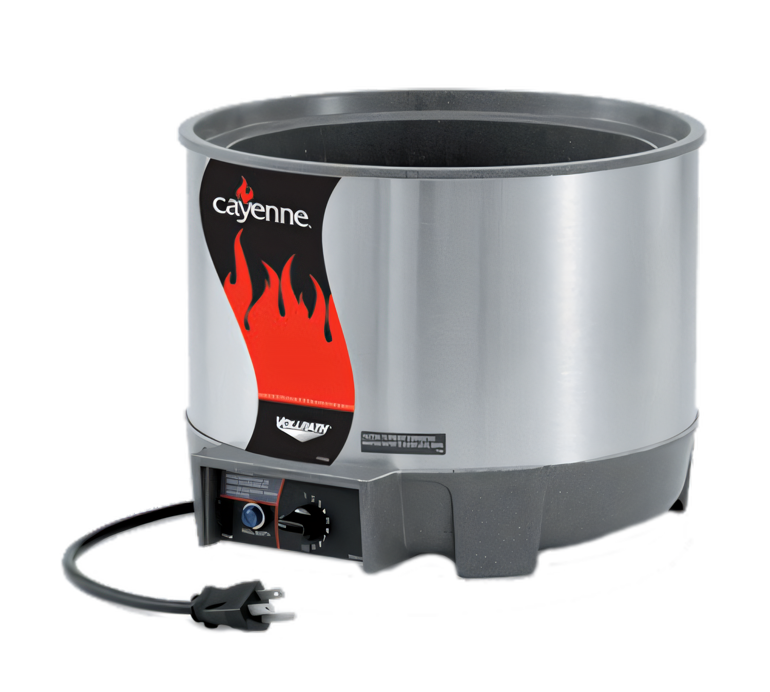 Cayenne® Round Heat 'N Serve Rethermalizer, countertop, 11 quart, 12-5/8" dia. x 9-5/8"H, recessed controls, low-water indicator light, 6-3/4" deep thermoset fiber-reinforced self-insulating resin well, dome heating element, brushed stainless steel exterior with granite-look base, non-skid feet, 800 watts, 6.7 amps, 120v/60/1-ph, cord, NEMA 5-15P, cULus, NSF, Made in USA (Refer to vollrathfoodservice.com for full warranty policy)