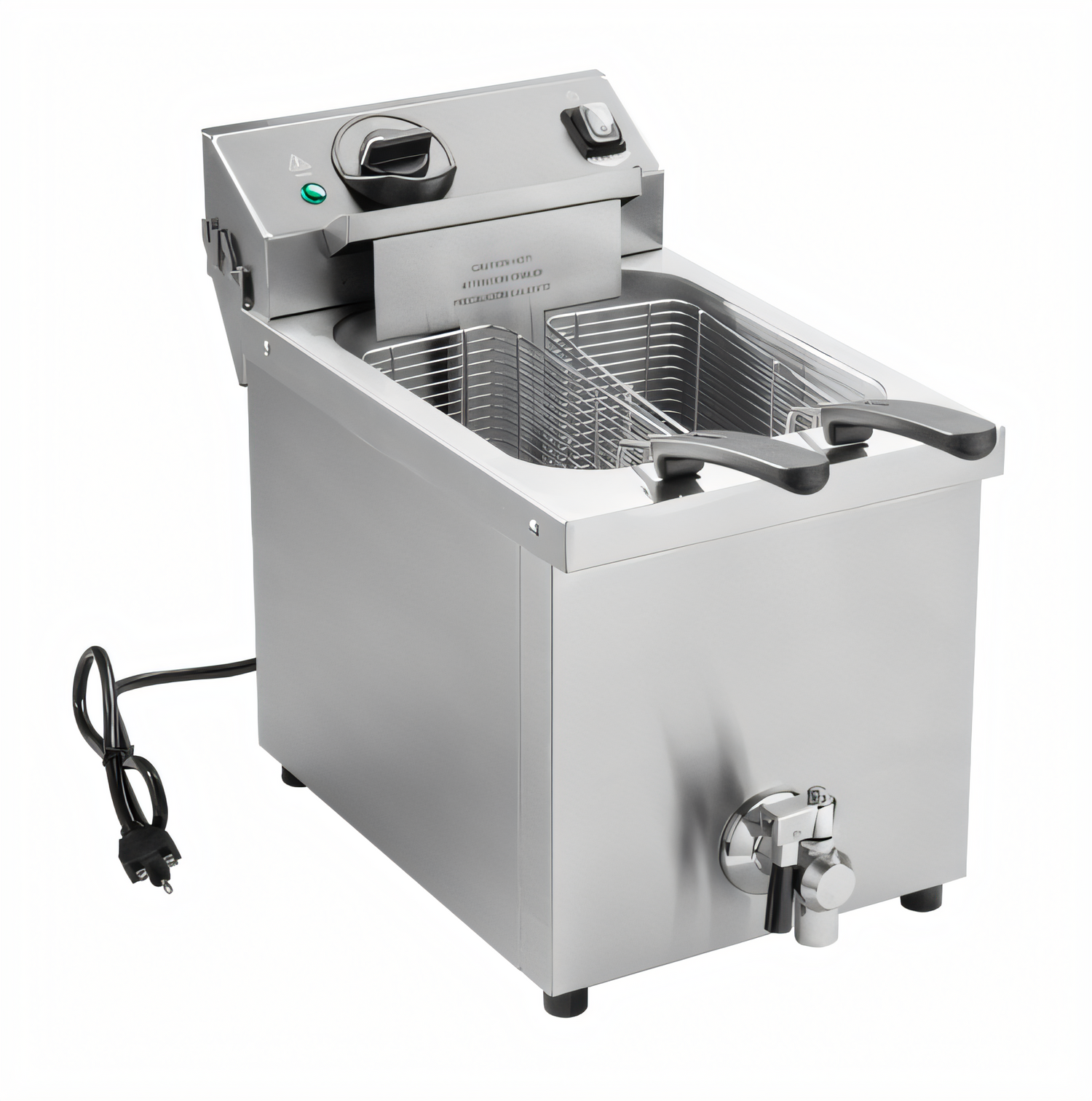 15 lb Electric Fryers, countertop, single well, up to 375°F thermostatic control, automatic thermal shutoff at 500°F, Stainless Steel, 208-240 voltage, 2700 - 3600 watts, 13 - 15 amps, NEMA 6-15P plug, UL, NSF, 1 Year Standard Warranty