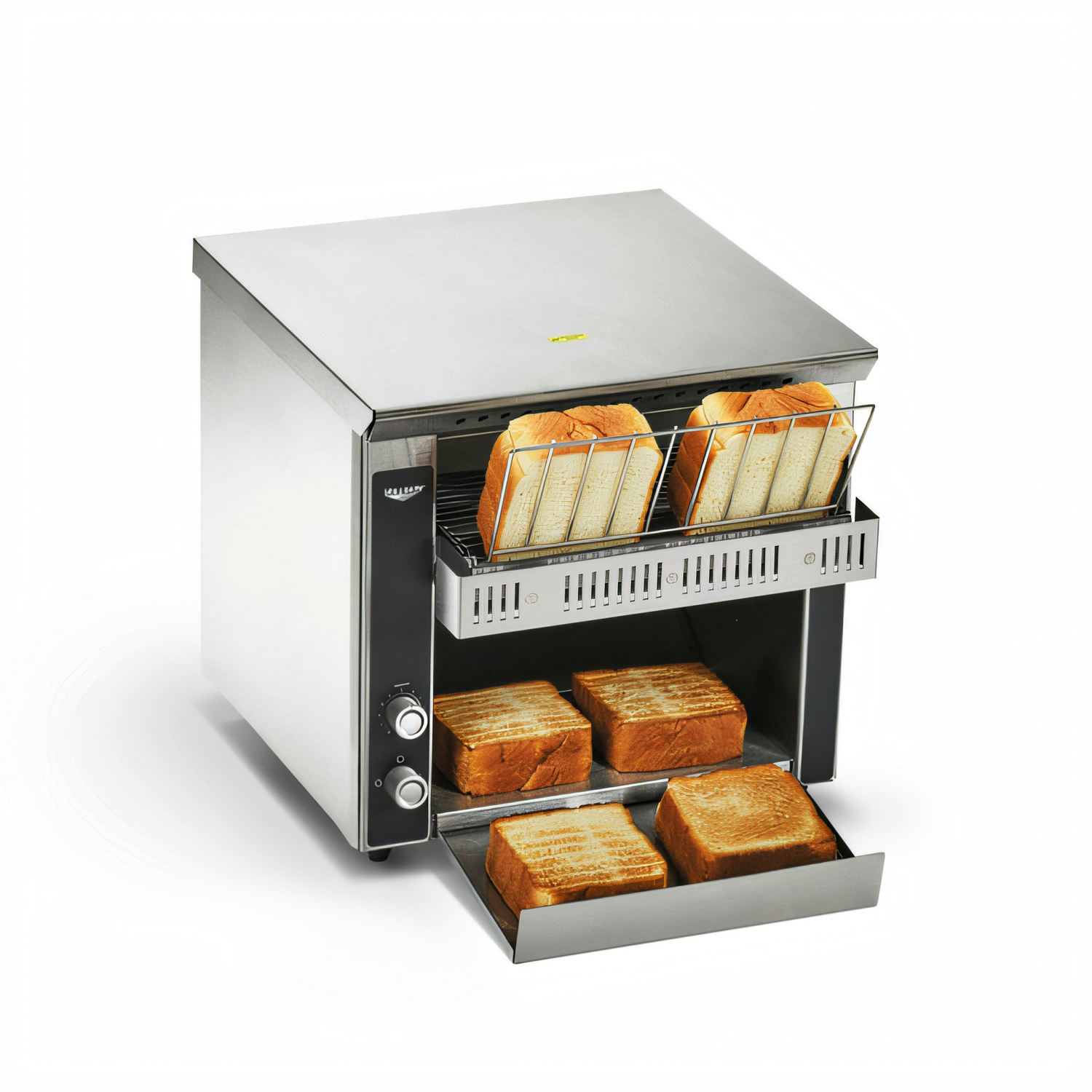 Vollrath CT2H-120250 countertop conveyor toaster, stainless steel, quartz elements, 1600W, UL/NSF certified, Made in USA, reliable warranty.