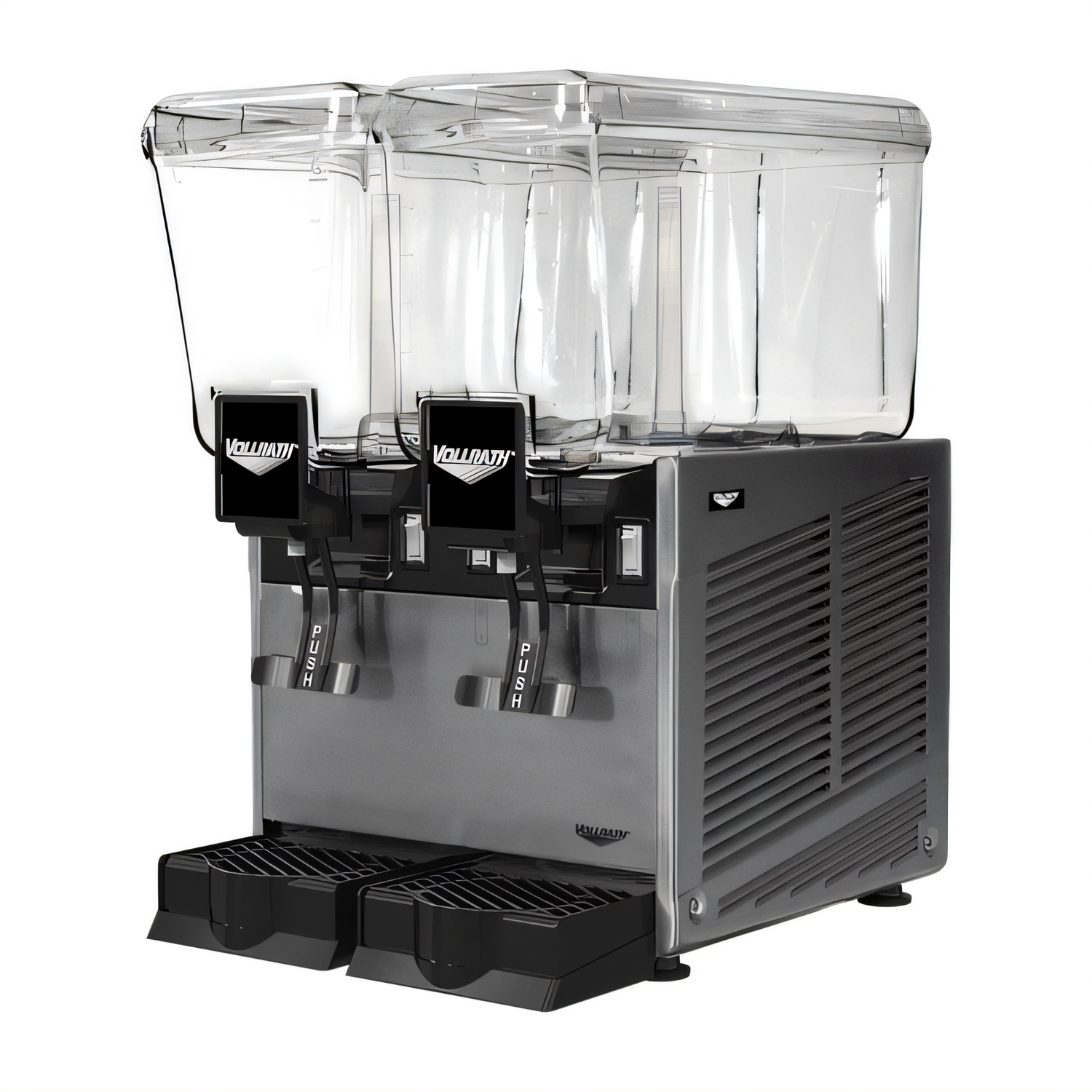Dual 3.2-Gallon Fountain-Spray Bowls • 35–41 °F Holding • 115 VDelight guests with a crystal-clear, continuously circulating display of ice-cold juice, lemonade or flavored water. The Vollrath VBBD2-37-F keeps beverages at the perfect serving temperature while its eye-catching fountain-spray action boosts impulse sales and reduces waste from settling or separation.