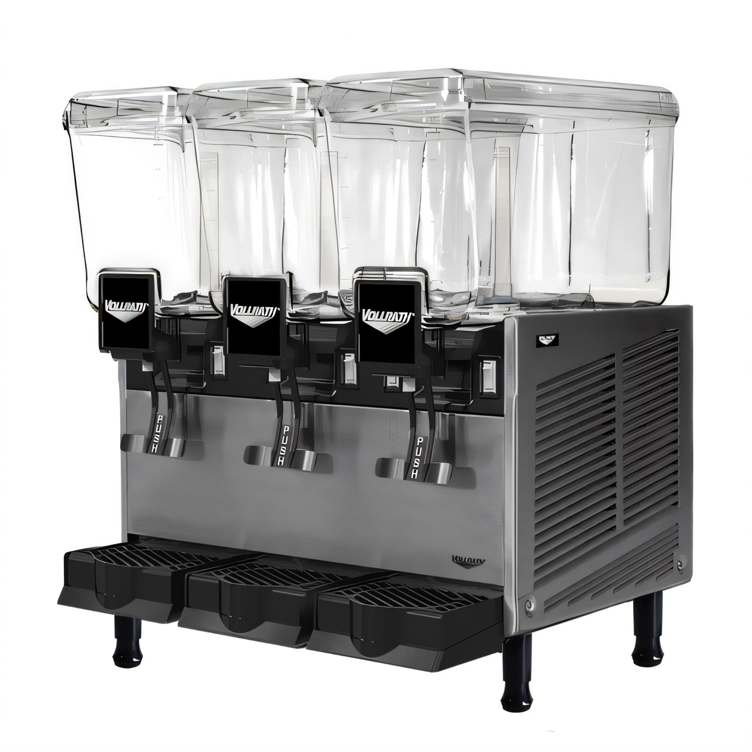 Model VBBD3-37-F | 9.6 gal (36 L) total capacityGive guests an ice-cold, crystal-clear view of your most popular drinks. Vollrath’s 3-bowl pre-mix dispenser uses a magnetic fountain-spray system to keep product gently agitated, perfectly chilled, and ready to pour all day long.