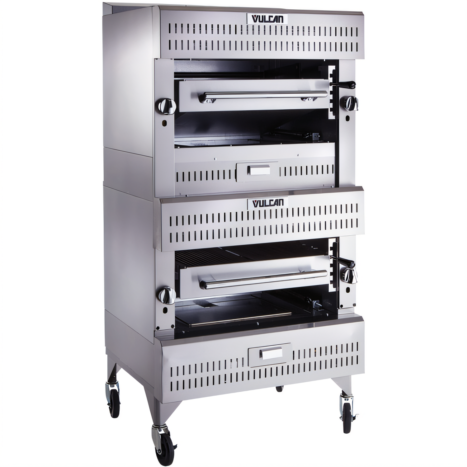 V Series Deck-Broiler, Heavy Duty range match, Gas, double-deck infrared burners, (2) 25-1/2" x 24-1/2 cooking grids, spring balanced, 5 position grip, stainless steel front, top & sides, casters, 1" rear gas manifold with regulator, 200,000 BTU, NSF, CSA Star, CSA Flame